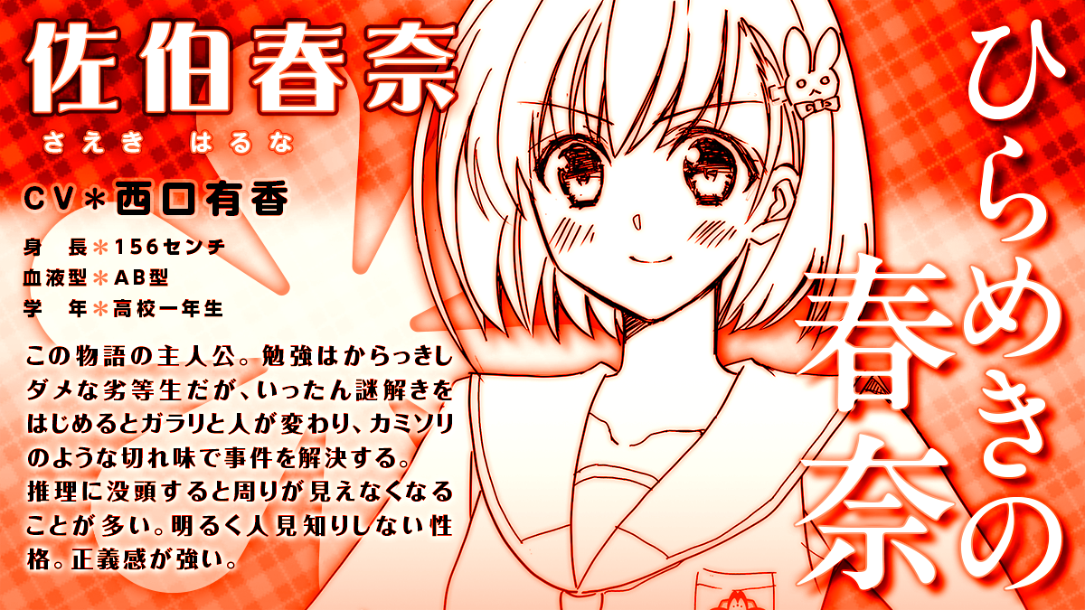 探偵部を引き継いだ春奈とその仲間たちが、数々の謎を解き明かす、学園青春ユーモアミステリー。
