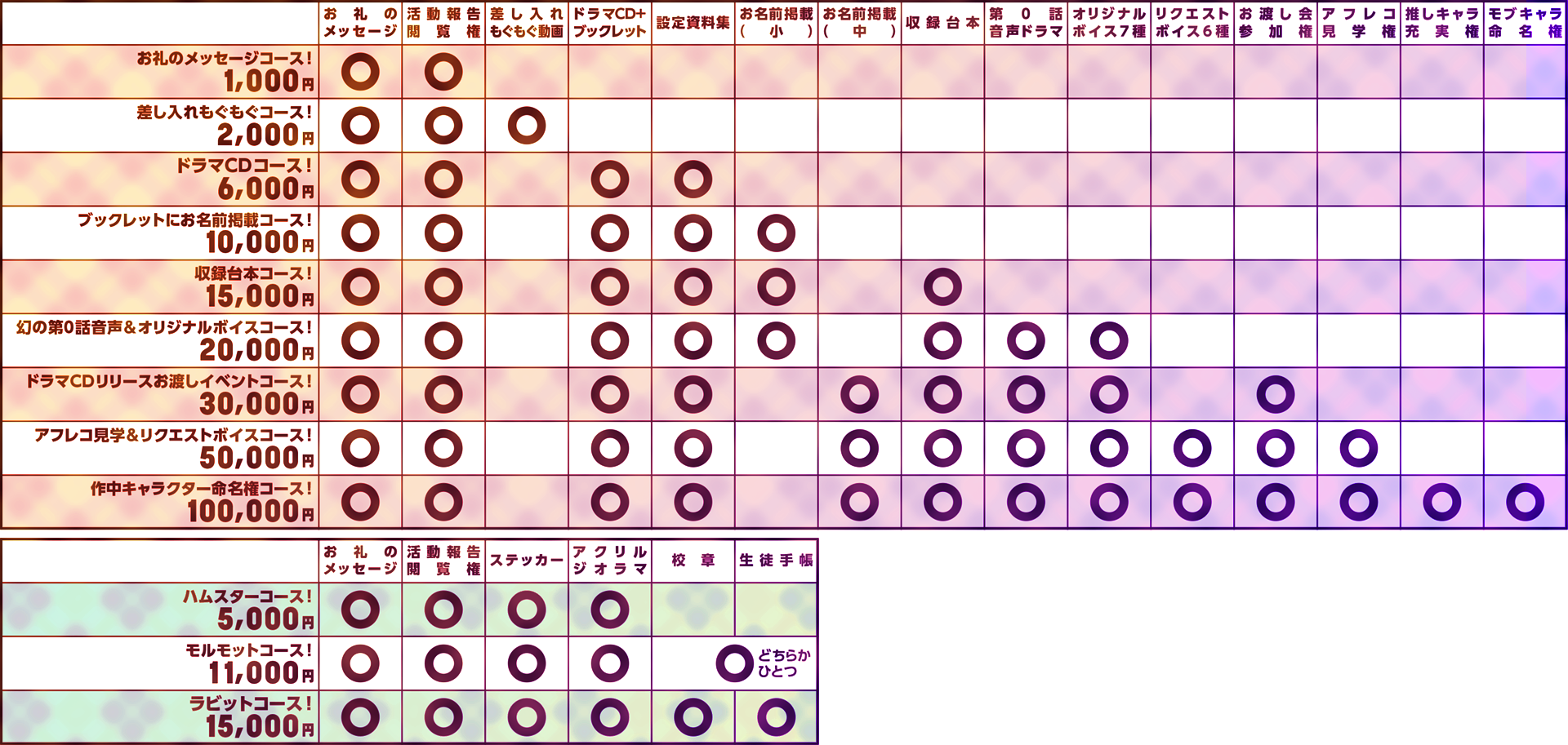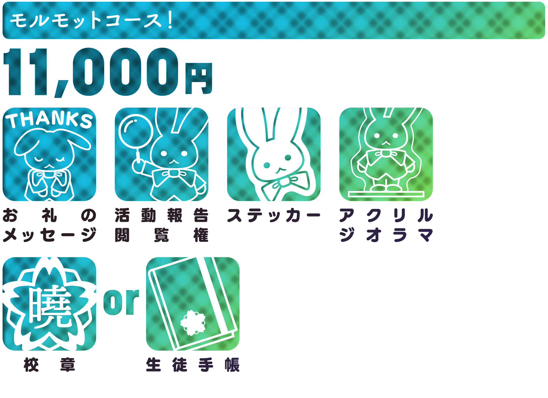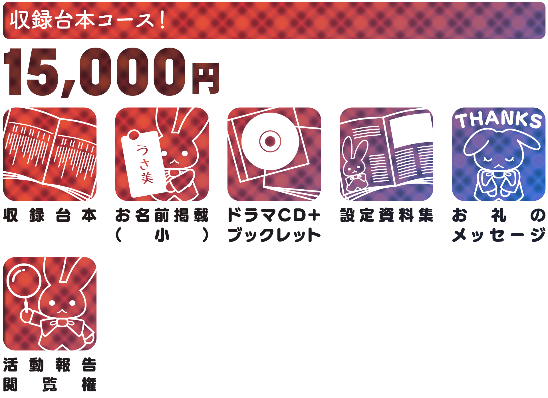 募集金額達成後要望が実現可能となりグッズなどが制作できるようになった場合は、ストレッチゴールを含めた単品コースとして販売を実施する可能性があります。