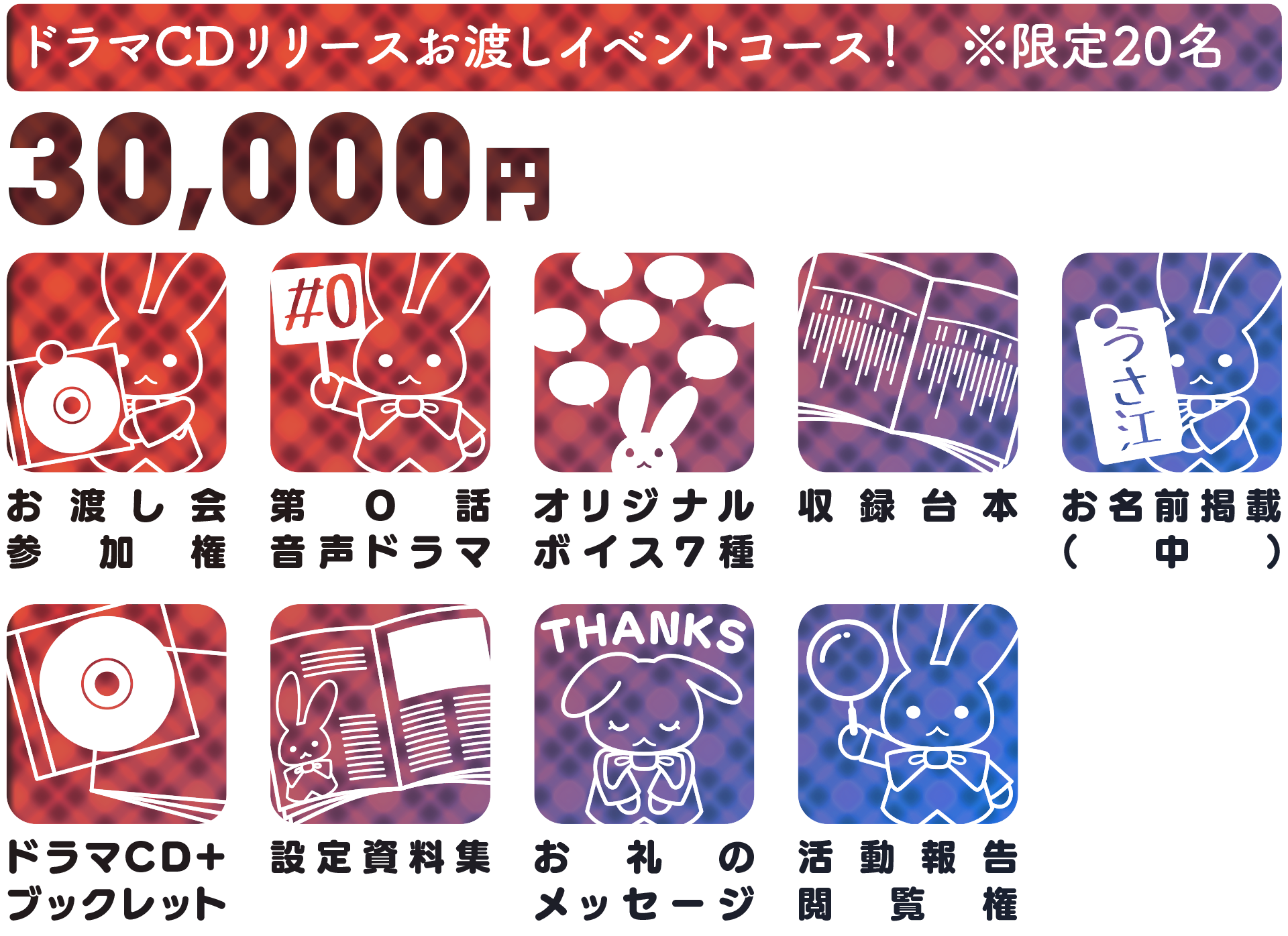 A.現状クラウドファンディングでの販売物は再販予定はありません、CDの内容のみ後日配信サービスなどでリリースする可能性はありますがドラマCDとしては本プロジェクトのみの販売となります。
