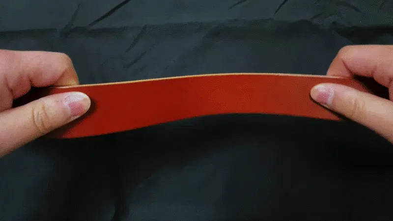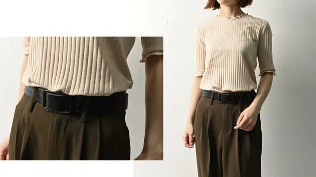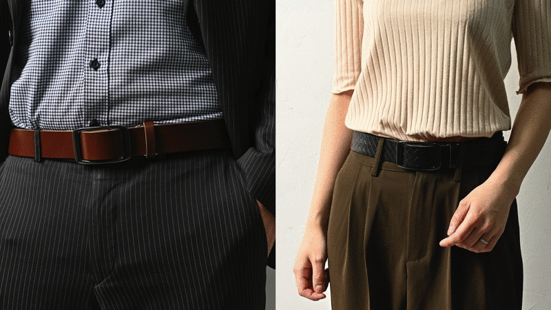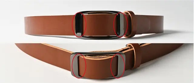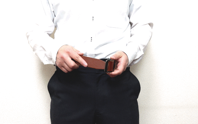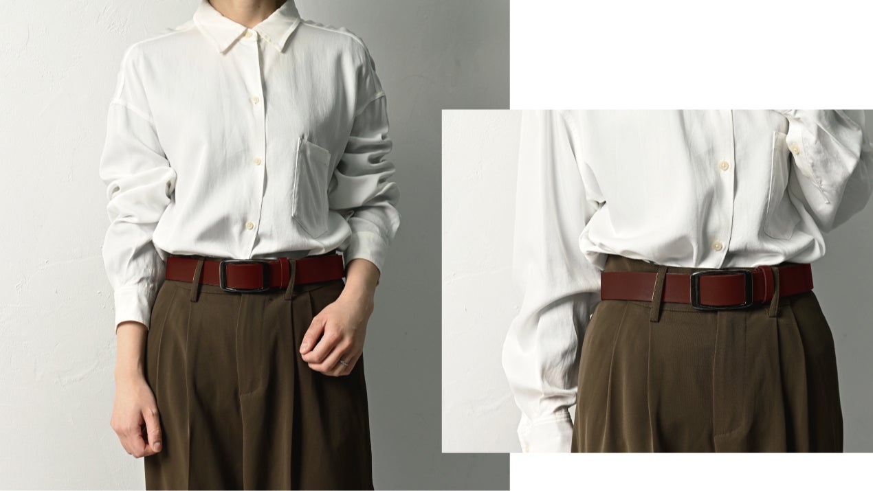 多くのベルトは2枚の革を縫製して作られていることが多いですが、経年変化により縫製が緩みやすく、また2枚の革の厚みによりベルトのフィット感が低下しやすくなります。