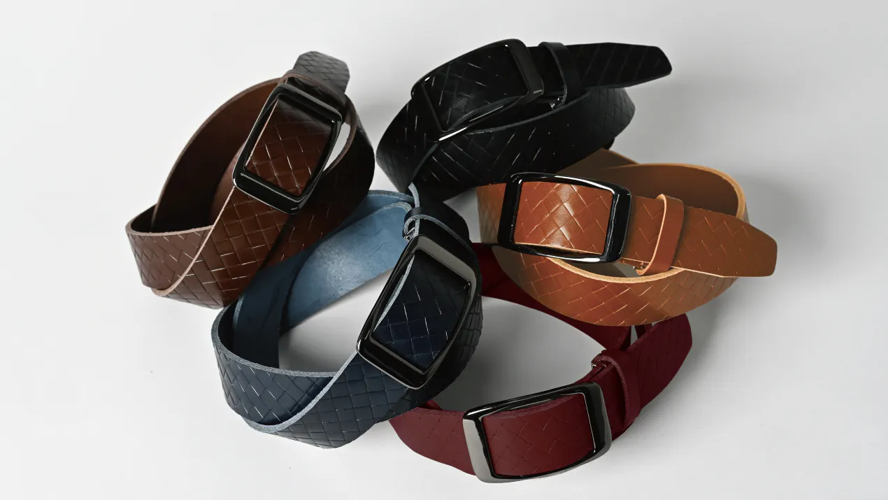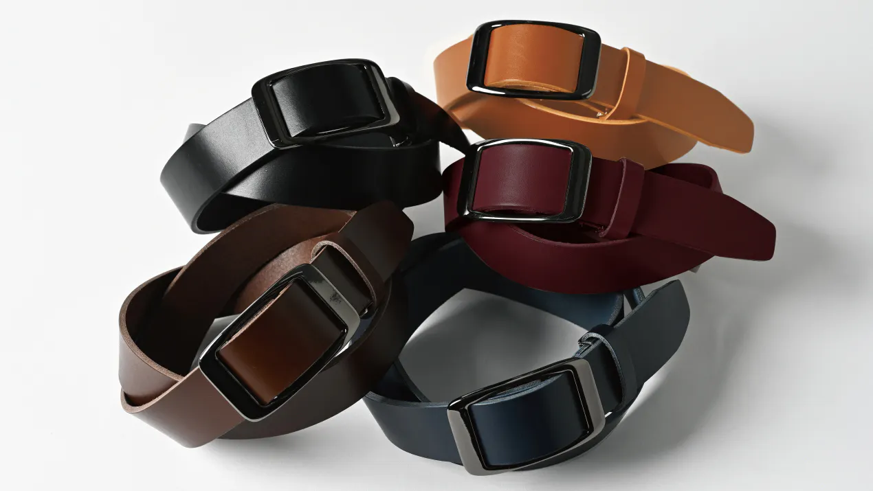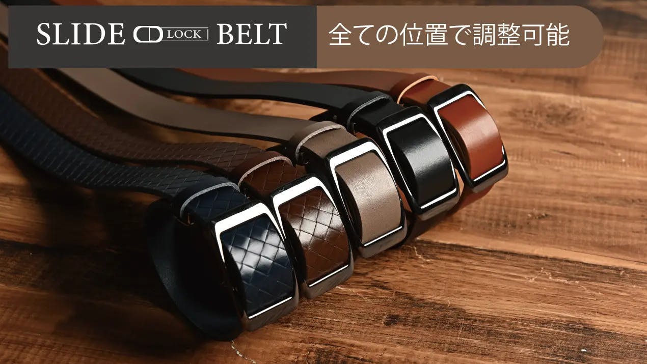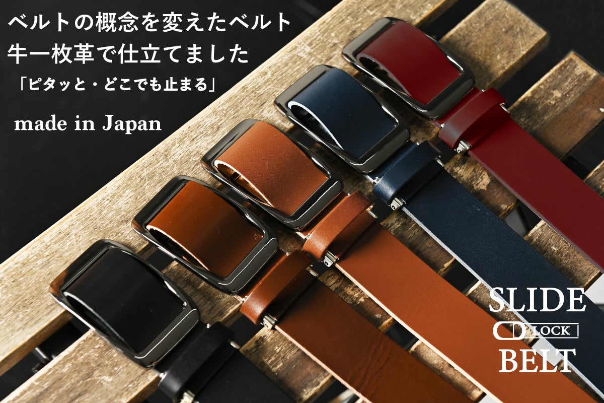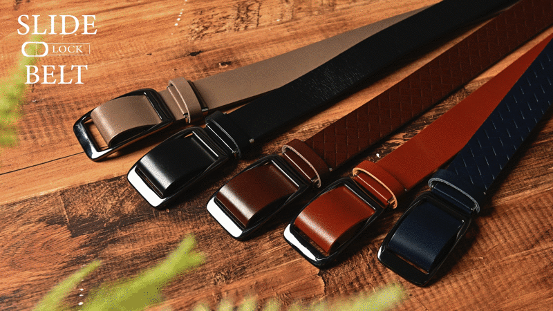 50年以上の歴史がある大阪のベルトメーカーが手がけるレザーブランド、SLIDE LOCK BELTです。ベルトは多くの人が毎日着用する必需品ですが、現在市販されているベルトには実は多くの問題があり、特に従来のベルトは穴の間隔や穴の間隔を合わせるため、使用中に締め付け感が安定しないことがよくありました。使用期間の経過とともにピン穴からひび割れが生じる可能性もありました。