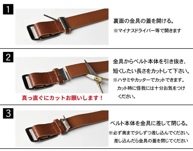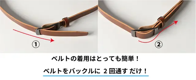 ベルトをバックルに通して最後に剣先を引っ張りご自身の一番気持ちいいサイズにジャストフィットするだけ!