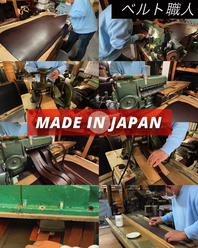 SLIDE LOCK BELTは長年の経験を持つ大阪のベルト工場で生産されており、革の裁断から完成まで日本の職人が13の工程を経て仕上げております。日本経済の情勢や円安の影響を受け、日本のベルト製造業は大きな課題に直面していますが、私たちは、新しい創造的なデザインと日本の職人との協働により、労働者の高齢化の問題を徐々に解決し、日本のベルト技術を発展させ続けることを目指しております。