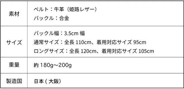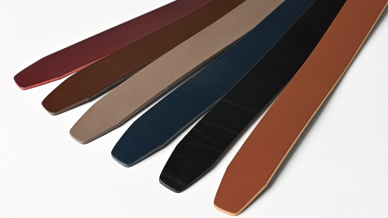 SLIDE LOCK BELTの本革ベルトは、全て一枚の牛革(一枚革)から作られています!3.5mm前後の肉厚な厚みがちょうど良く、兵庫県の姫路市で鞣された革自体も柔らかく上質で、腰に巻いた後もしっかりとしたフィット感を感じることができます。