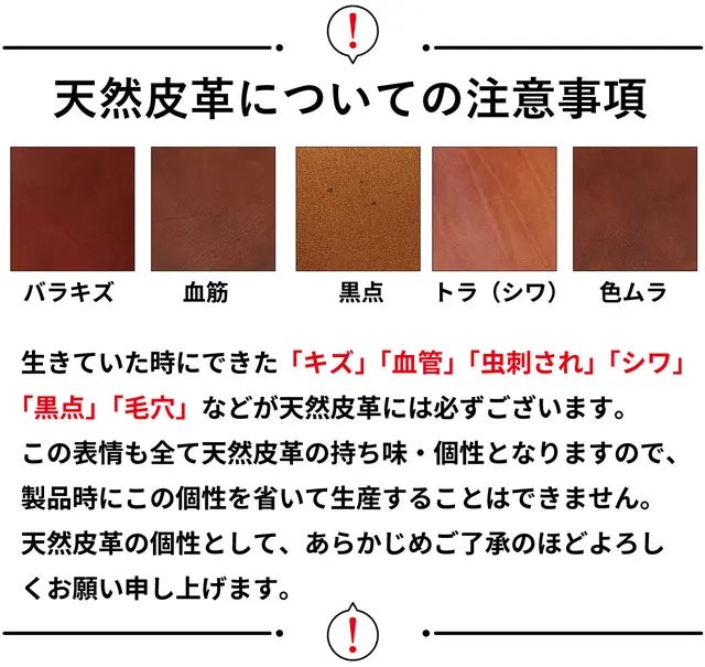 ※天然皮革に染料とオイルを使用し、仕上げた商品になります。その為、摩擦、水濡れになどにより色落ちが生じる場合がございます。