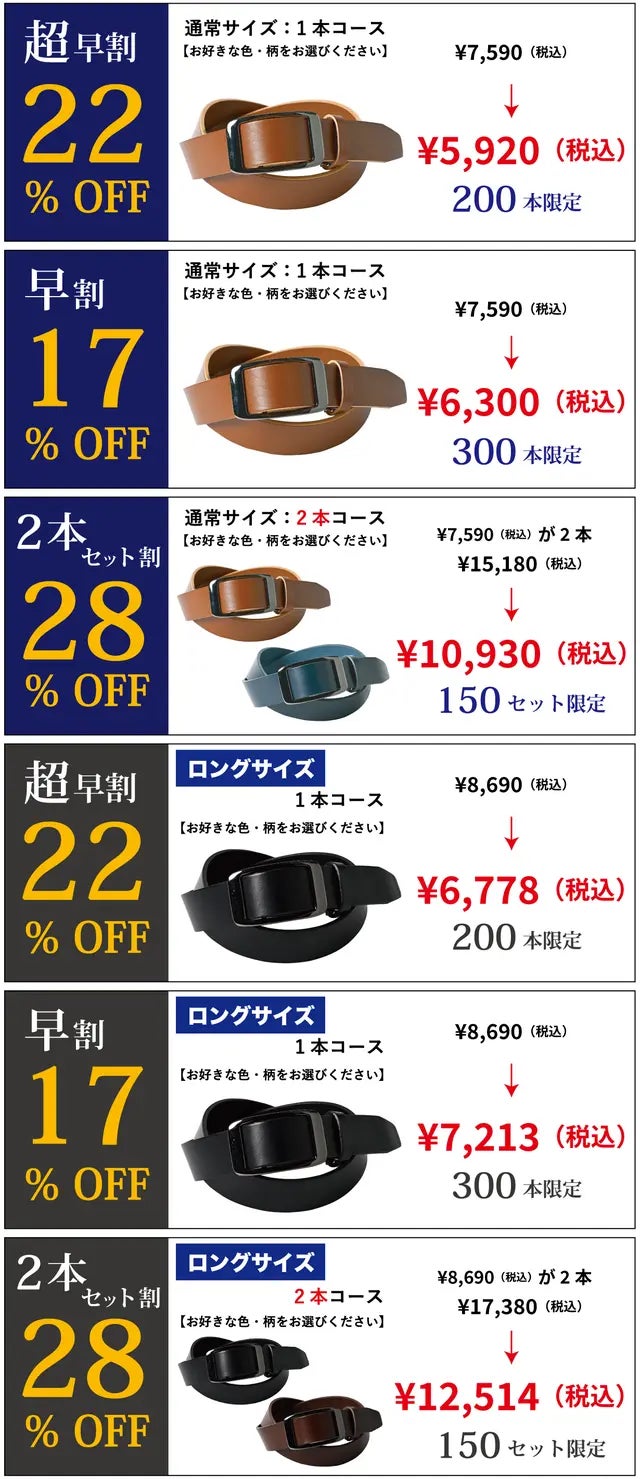 弊社はベルト専門メーカだからこそベルトには絶対の自信を持っております!今回の商品も一から企画したオリジナル商品になり、価格含め自信作ができたと感じております!皆様に是非とも、この商品を届けたいと切望しております。