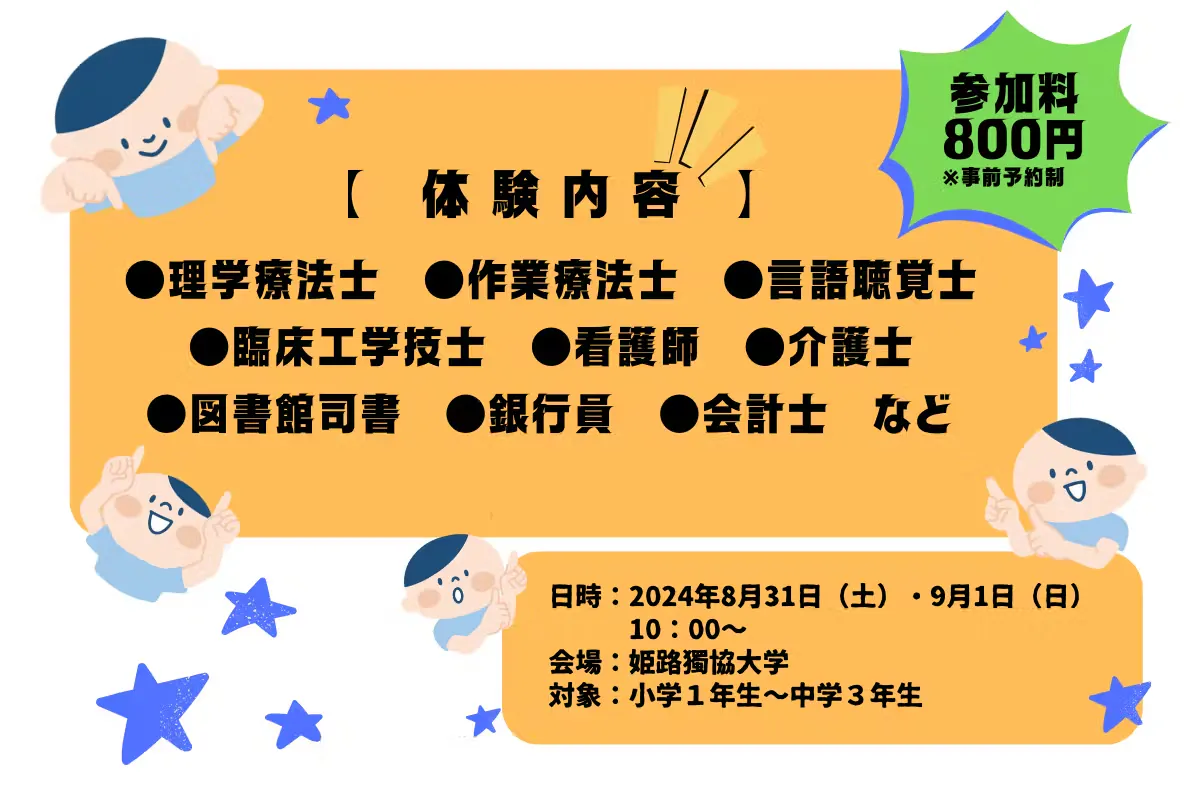 姫路獨協大学は、兵庫県姫路市を中心とした西播磨4市21町85万人の住民の「姫路に総合大学を」という永年の願いに応える形で、姫路市と学校法人獨協学園との全国初の「公私協力方式」により、1987(昭和62)年に兵庫県姫路市に開学し、地域社会のニーズに対応する、「地域に根差した大学」として、その歴史を刻んできました。長期休みには、中学生・高校生対象に本学の学科の紹介として、小規模な仕事体験のイベントを開催してきました。募集開始と同時にすぐ満枠となる程、大変反響の大きいイベントで、県外の学生様にもご参加いただいています。参加者の皆さまからは