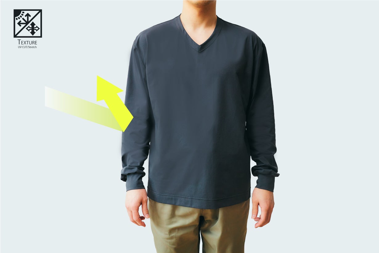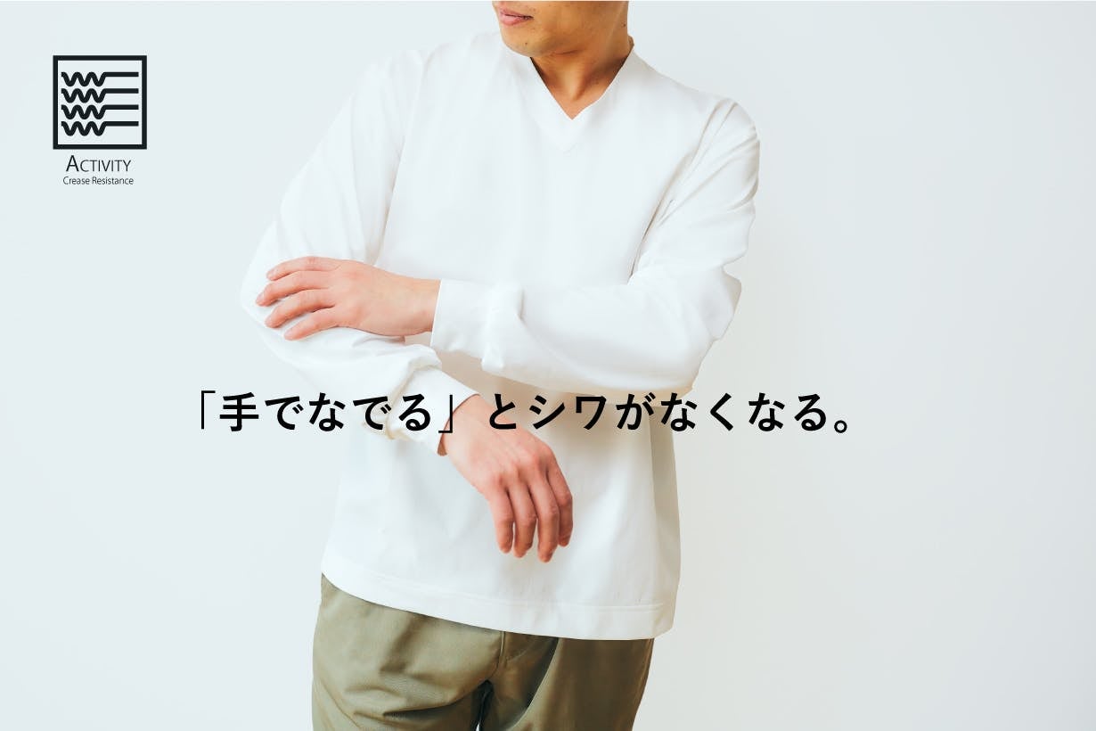 又、手のひらの熱で生地の表面に入った「しわ」が消える性能を持っています。