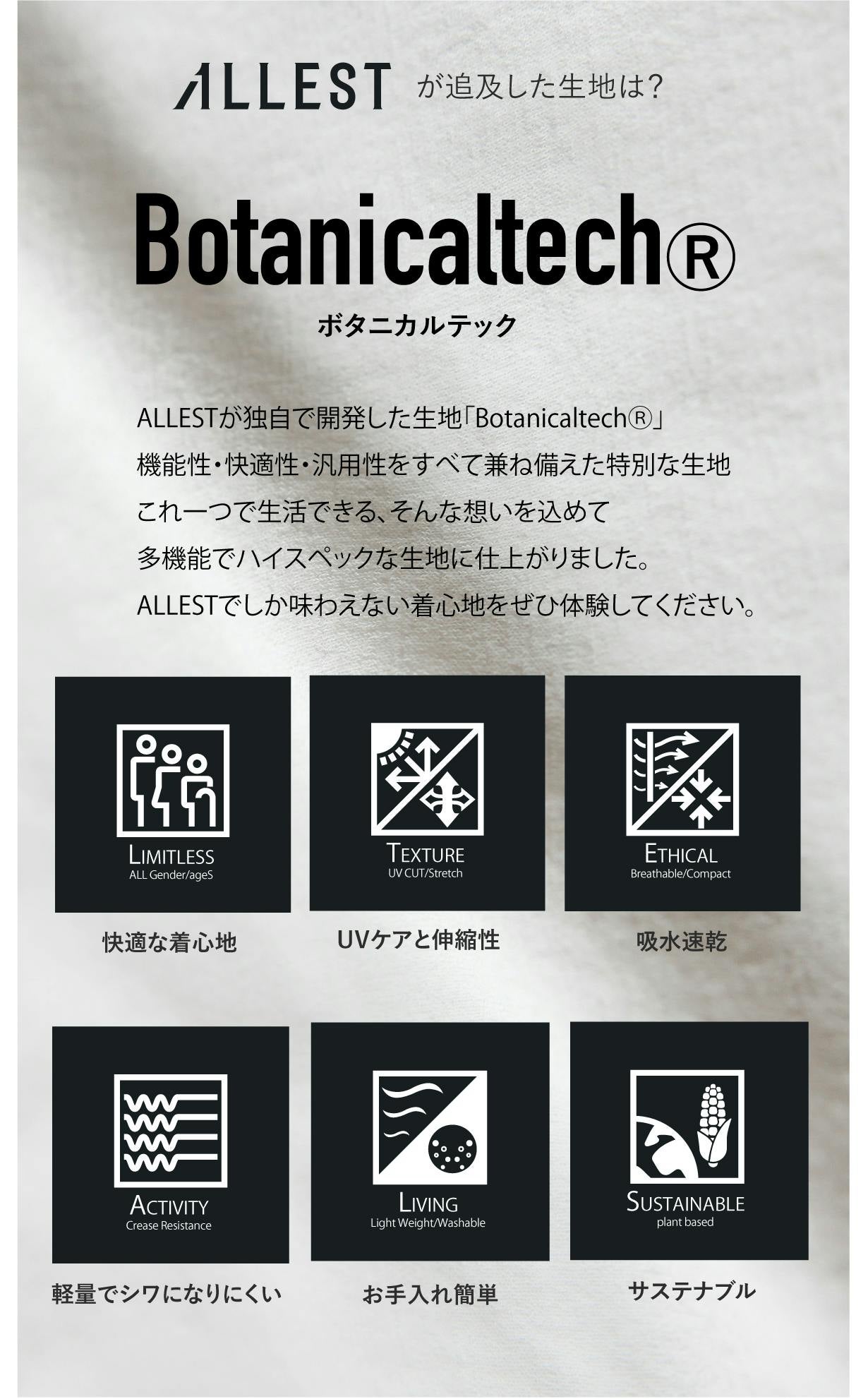 Botanicaltech®をより「シルキータッチ」にしたBotanicaltech®シルキー肌にまとわりつかず、伸縮、吸湿速乾性があり、肌触りとサラッと感が気持ち良い毎日をサポートします。