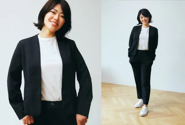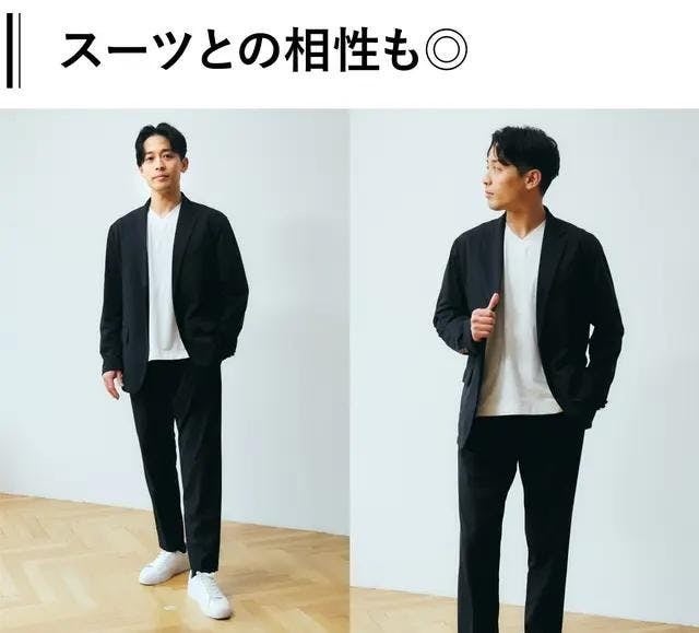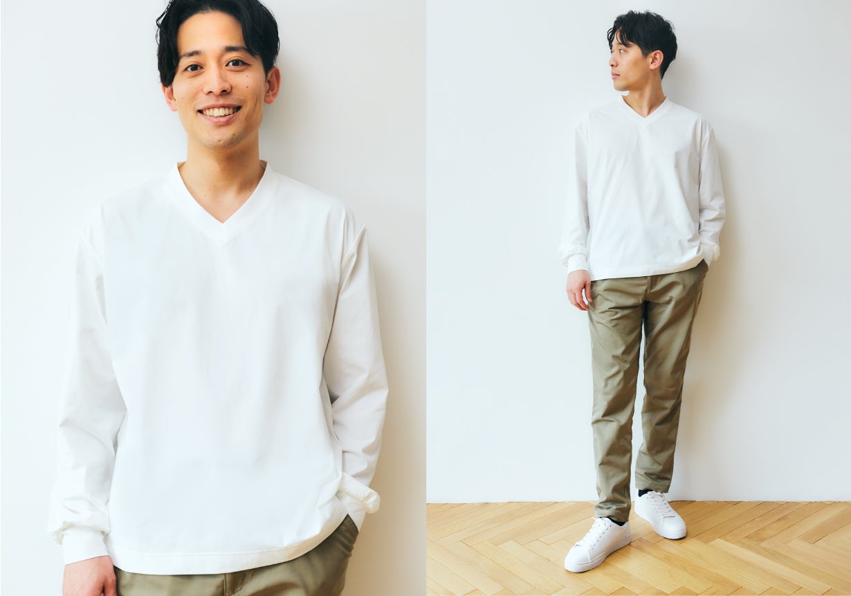カジュアル合わせもALLESTサステナブルスーツと共に「全身快適」