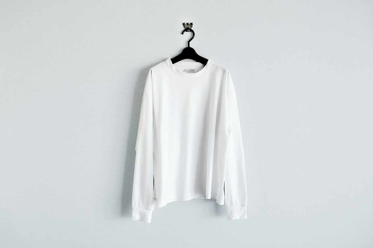 ALLESTの半袖Tシャツは昨年夏に公開しその「肌心地」に多くの応援をいただきました。今回は長袖Tです。長袖試作はずっと着用評価をして愛用品となっていましたが、公開するタイミングを逃していました。今回のタイミングでスーツでも使っている素材「Botanicaltech®」のタッチにこだわり、白の「透け防止」性能を高め、「タンブラー乾燥で縮みがほとんどない」寸法安定性が高く、「外観もしわが入りにくい」W&W(WASH&WEAR)性能が高くなりました。Botanicaltech®シルキーの「快適さ」を肌で感じてみてください。きっと「ラグジュアリー」な着心地を感じていただけると思います。又、前回Tシャツは価格が高かったと思っています。少ない数量を生産したためでもあります。ALLESTブランドもお陰様でデビューしてT年以上経過し、コンスタントに工場にオーダーができるようになり、価格交渉できるようにもなってきました。皆様には本当に感謝しかありません。ありがとうございます。