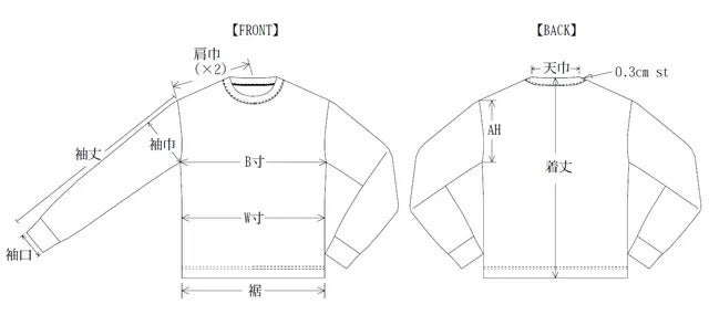 ・寸法変化率身丈0%、身巾0.3%、袖丈0.3%裾幅-0.2%