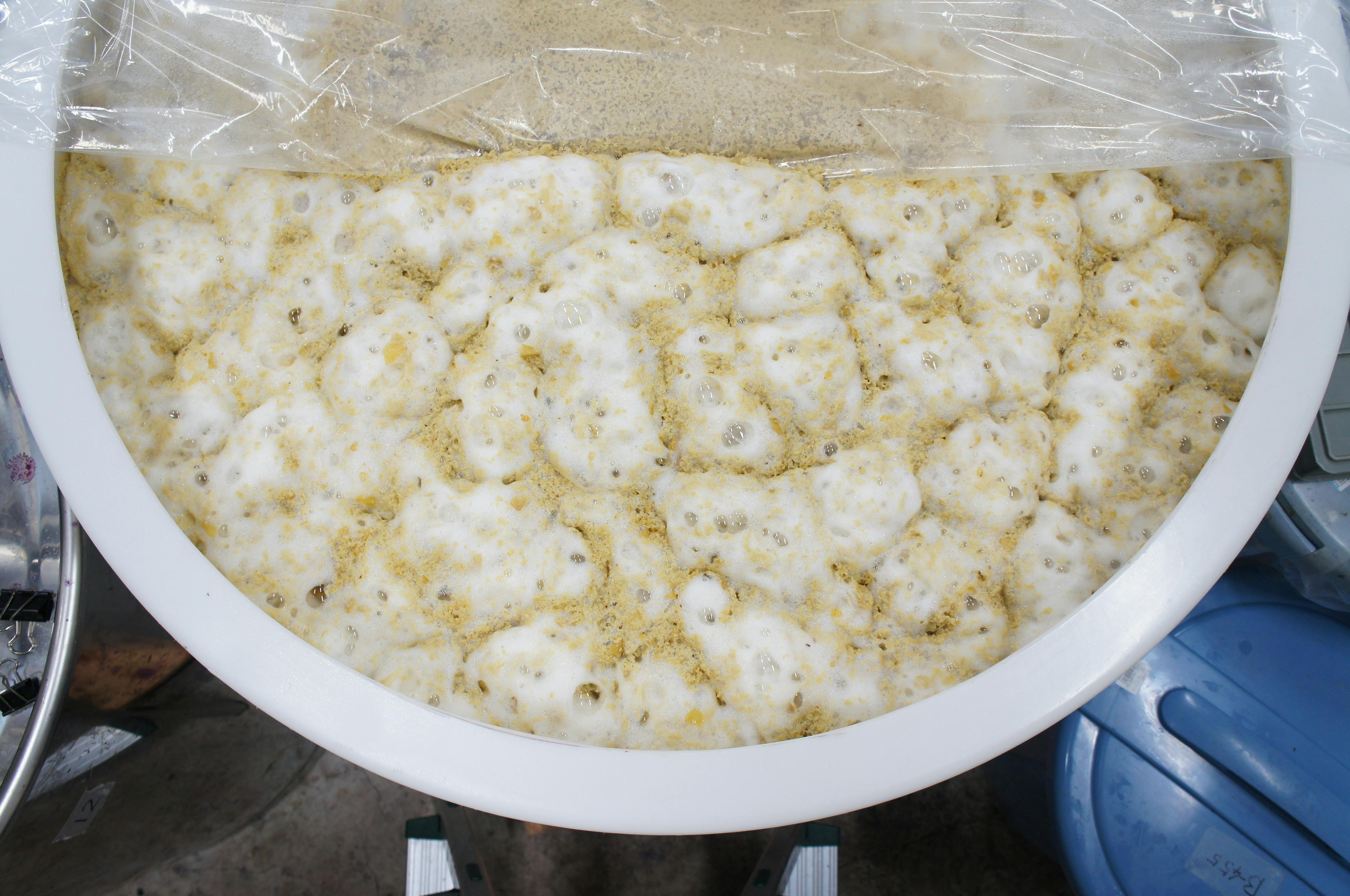 ・シャインマスカットの盛んに発酵しているの様子(酵母添加3日後)