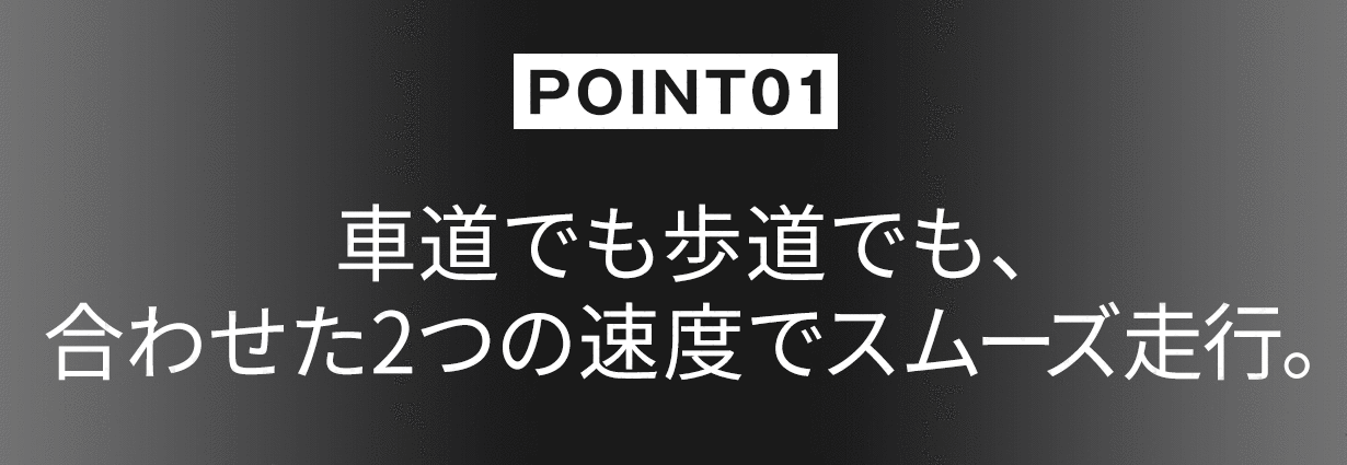 A:時速20km/hモードを選択中は車道の走行、時速6Km/hモード選択中は歩道の走行となります。なお、走行中のモード切替は行えませんので、ご注意ください。