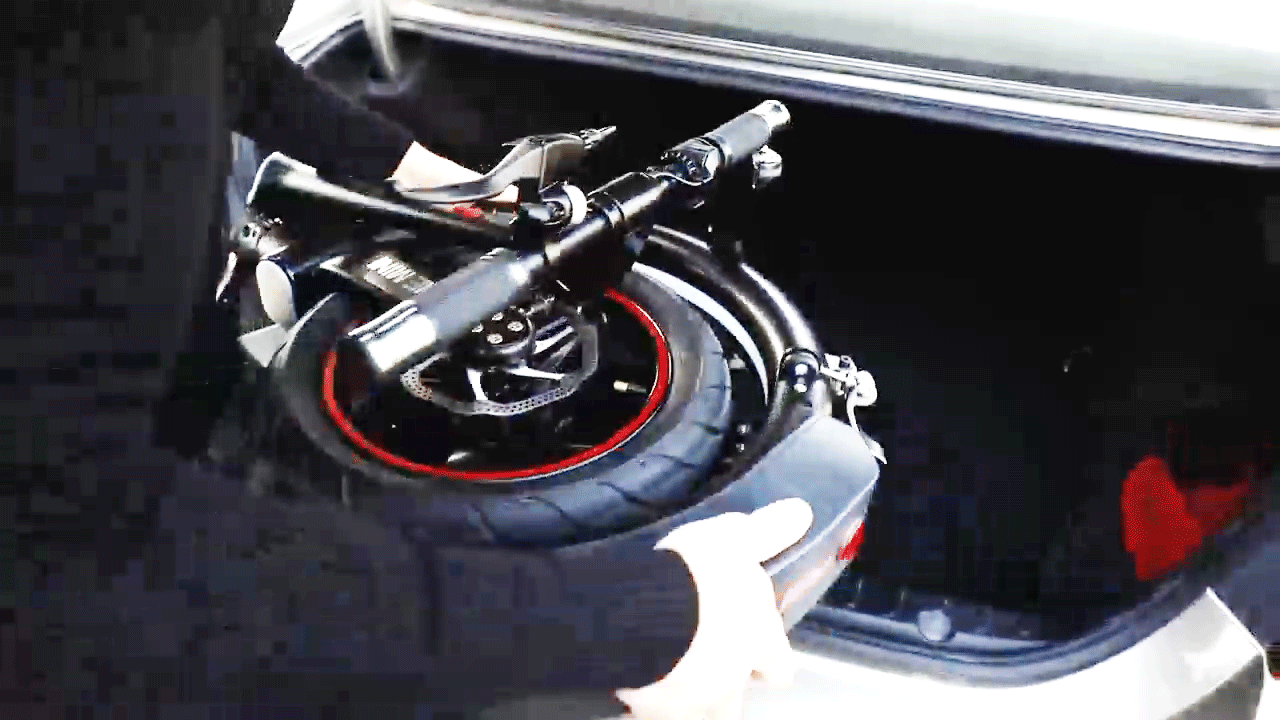 タイヤサイズにまで本体が小さくなる3段階折り畳み機構で持ち歩き・持ち運びらくらく。