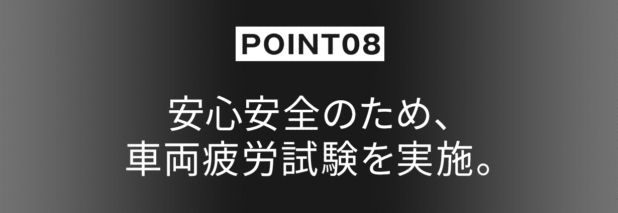 60kg荷重の作業条件下で、車両全体が実際の走行路面を想定し主に以下の項目をテストしました。