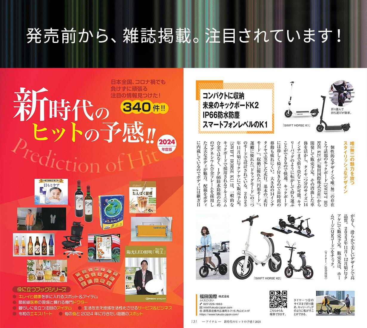 2023年11月7日、注目情報を発信する雑誌「2024新時代のヒットの予感」に掲載!