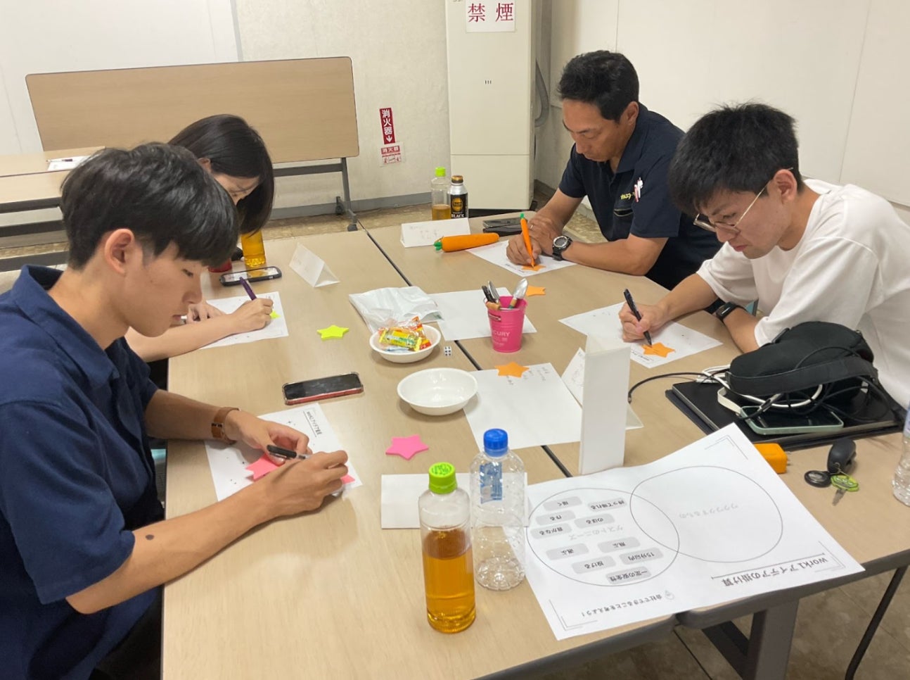 院生(右手前)と林業会社に勤める片山さん(右奥)を中心に知識モリモリ活かしたイベントを考案!