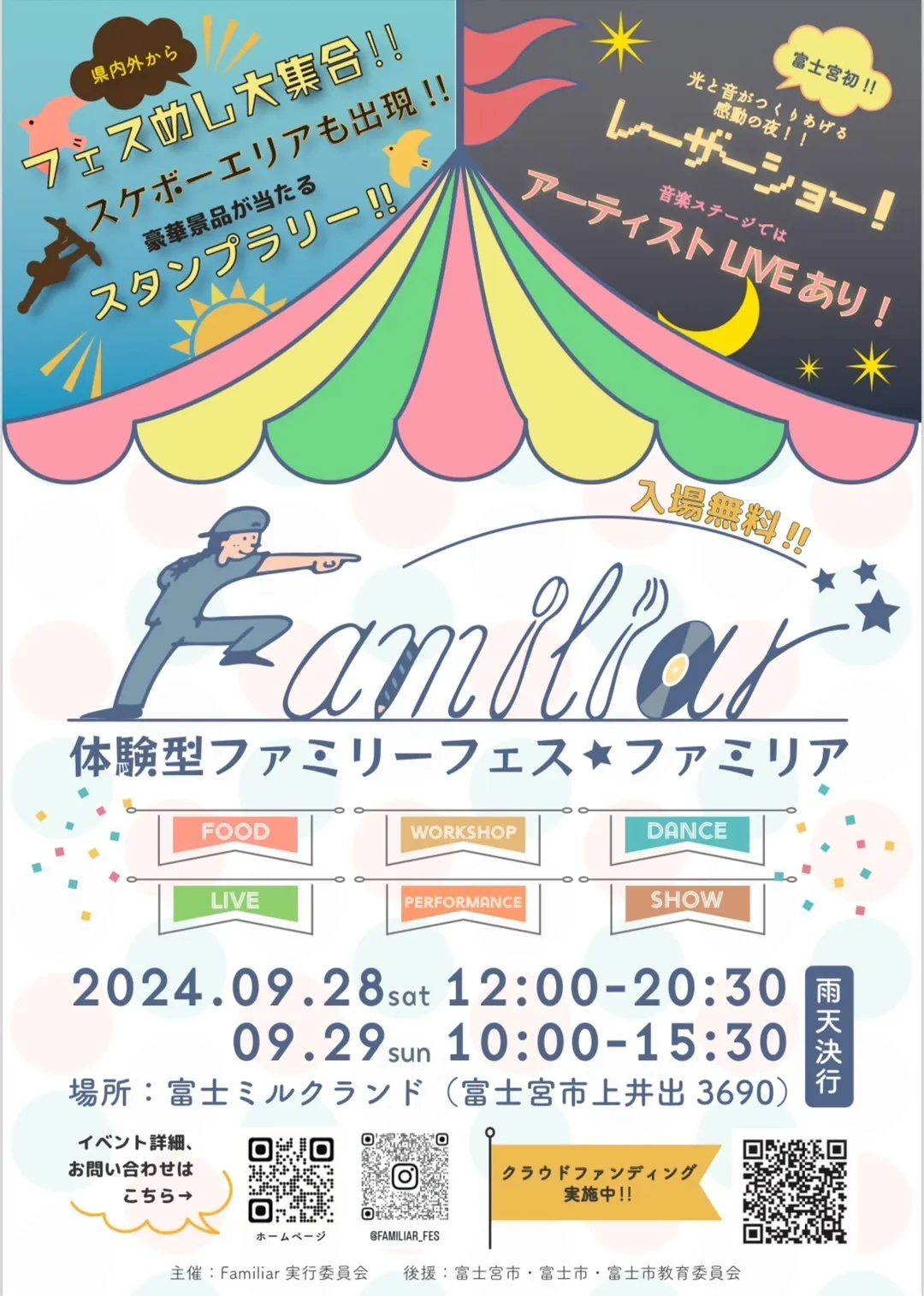 富士宮市で新たなフェスを一緒に作り上げませんか?地域の魅力を最大限に引き出し、子供から大人までが楽しめる特別な一日を実現するために、皆様の温かいご支援をどうぞよろしくお願い申し上げます。