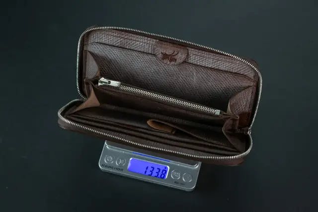 「極小長財布 batard-バタール-」はオールレザーの長財布なのに、不必要なパーツを取り除くことにより、なんと「約136g」と、とても軽い財布にすることができました。