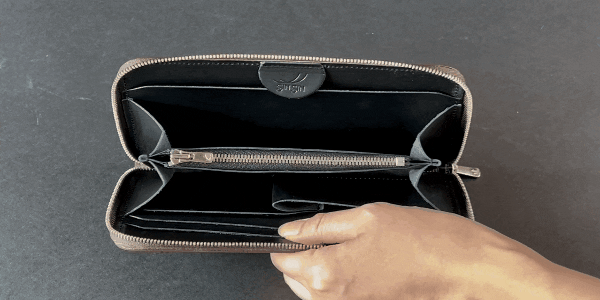 お札ストッパーを付けたので、お札がファスナーに挟まってストレスになりません。