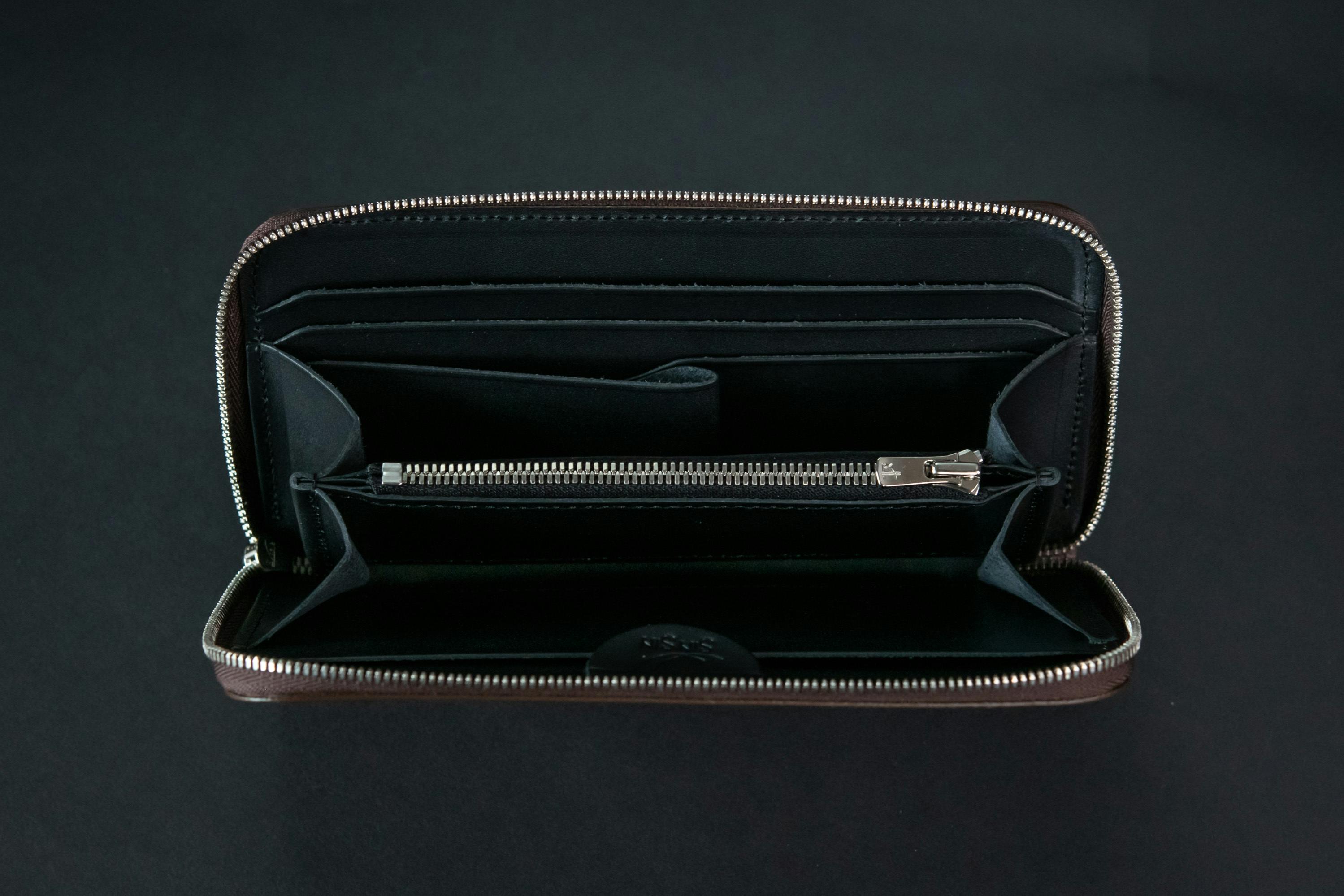 きっかけはお客様の声でした。「流行りに流されてコンパクト財布を買ってみたものの、今まで使っていた長財布に比べて、お会計の時にモタモタしてしまうし、あまり実用的ではなく、使いづらいんです。」私も長年、長財布愛好家としてラウンドジップの長財布を使っていました。コンパクト財布に移行してみたものの、長財布に比べて使いづらく、どうしたものかな~と考えておりました。考えて考えて考えていれば、「ハッ!!」と気づきました。自分が財布職人であるということに。笑それと同時に「ないなら作ればいいんだ」という事に。そしてようやく答えにたどり着きました。