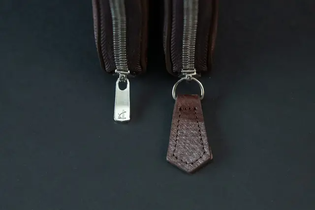 A4 革引手の方が金属引手に比べて大きいのでファスナーの開閉が楽になっております!