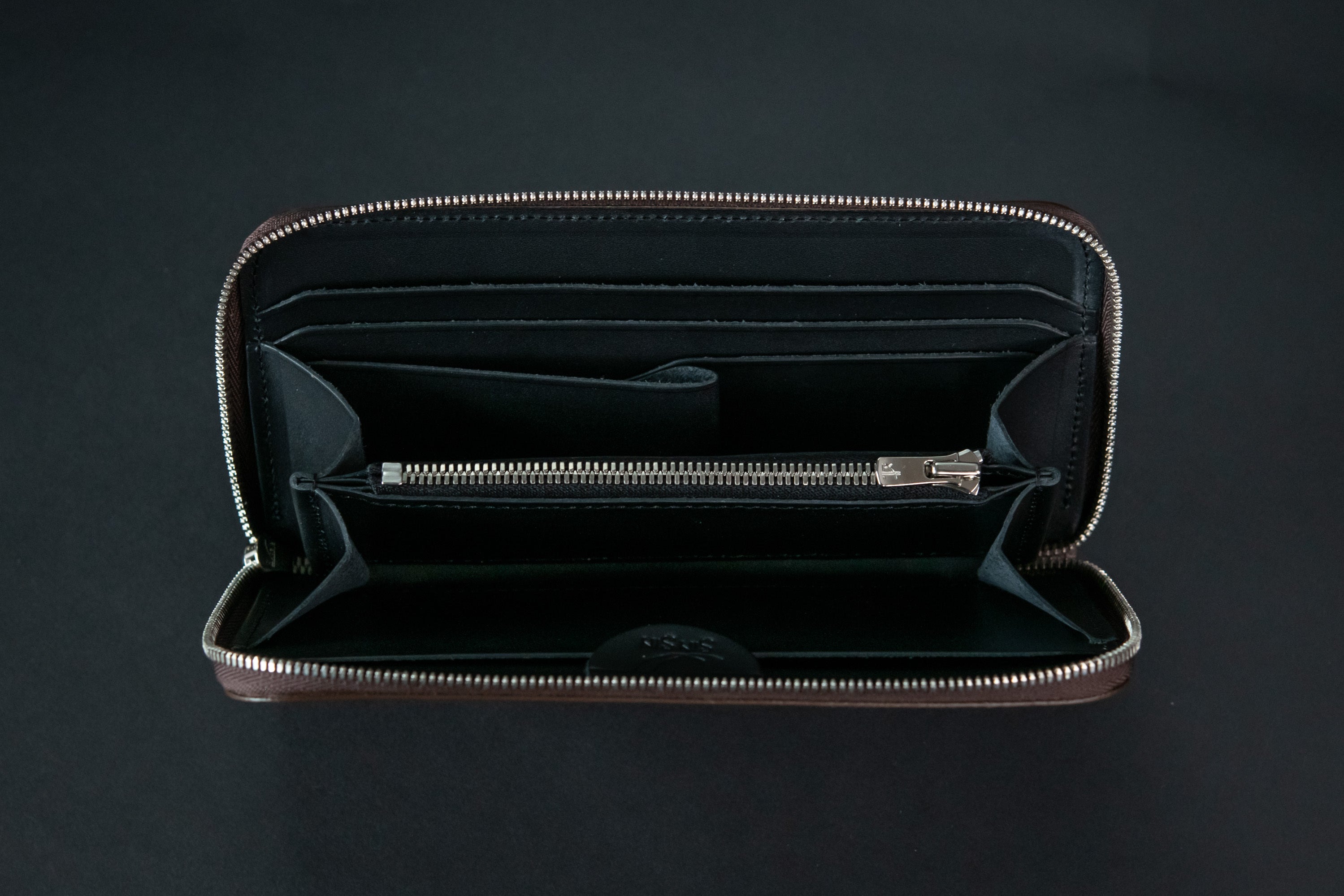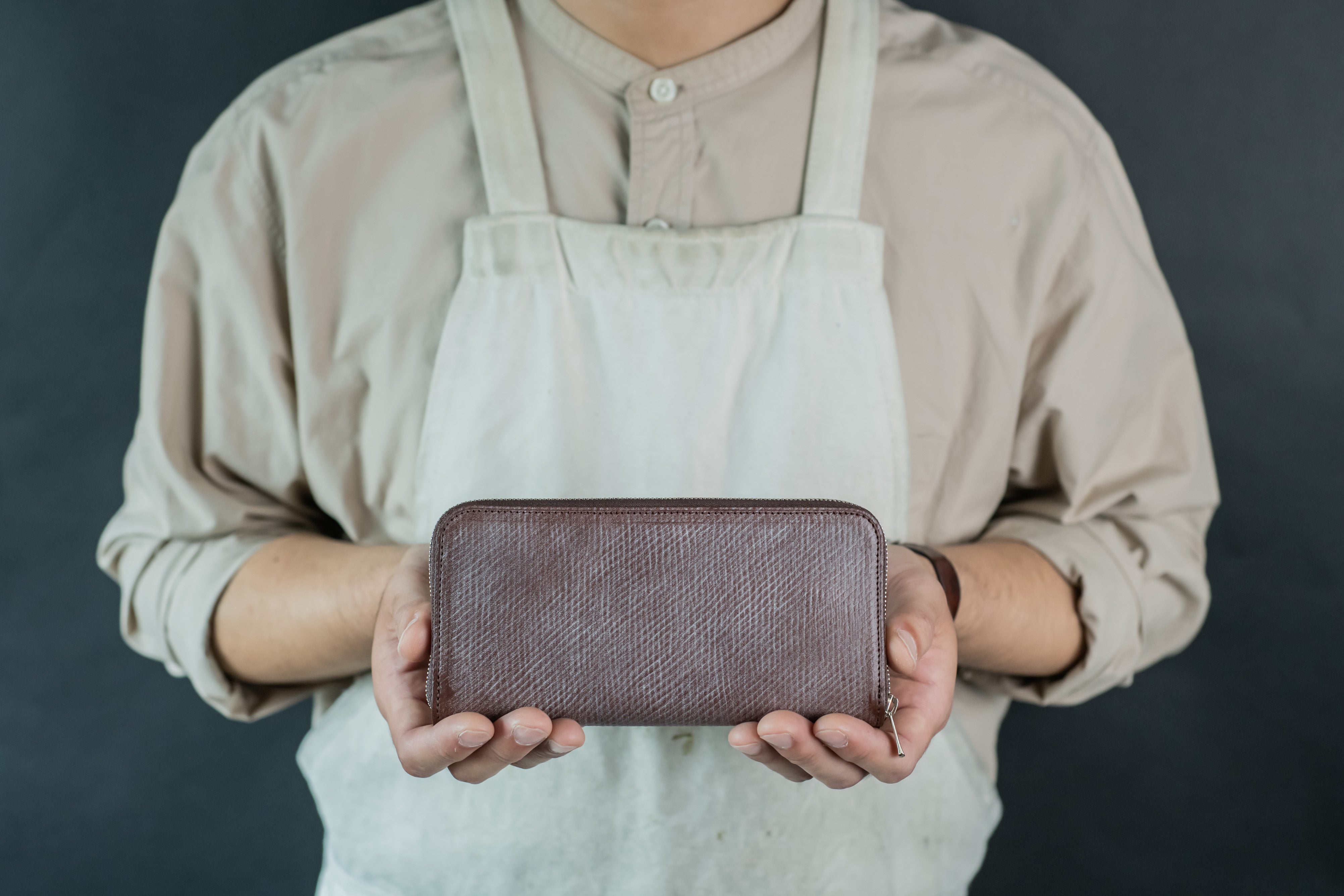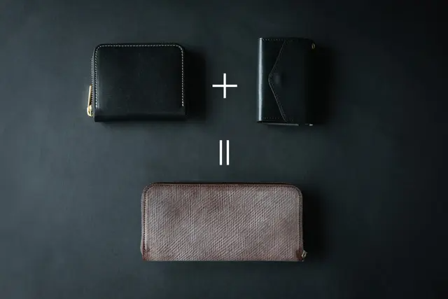 きっかけはお客様の声でした。「流行りに流されてコンパクト財布を買ってみたものの、今まで使っていた長財布に比べて、お会計の時にモタモタしてしまうし、あまり実用的ではなく、使いづらいんです。」私も長年、長財布愛好家としてラウンドジップの長財布を使っていました。コンパクト財布に移行してみたものの、長財布に比べて使いづらく、どうしたものかな~と考えておりました。考えて考えて考えていれば、「ハッ!!」と気づきました。自分が財布職人であるということに。笑それと同時に「ないなら作ればいいんだ」という事に。そしてようやく答えにたどり着きました。