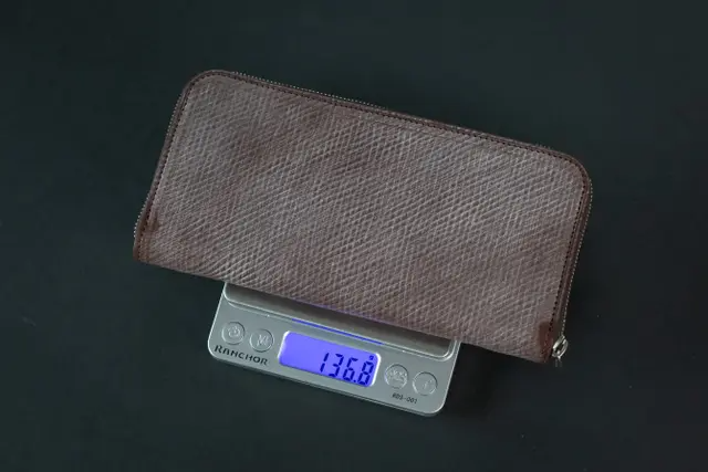 「極小長財布 batard-バタール-」はオールレザーの長財布なのに、不必要なパーツを取り除くことにより、なんと「約136g」と、とても軽い財布にすることができました。