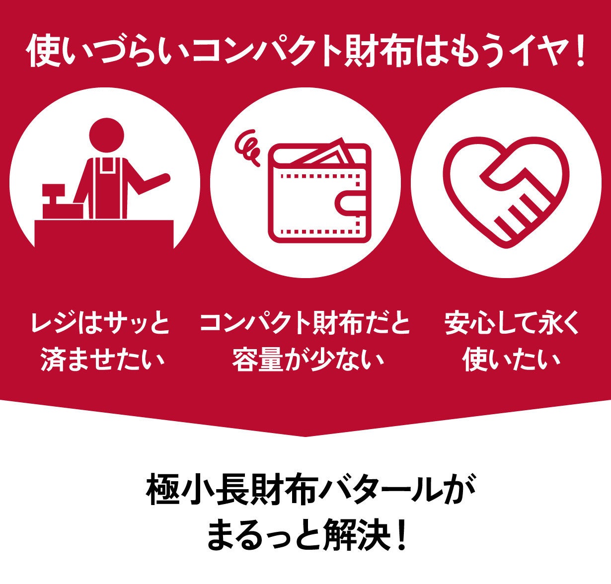 コンパクト財布だけでは財布の中の整理が出来ずに、やむを得ず財布を2つ持って管理していたあなた!「極小長財布 batard-バタール-」ならコンパクトな長財布なのでこれひとつで、財布の中身を整理整頓できます。