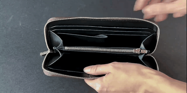 お札ストッパーを付けたので、お札がファスナーに挟まってストレスになりません。