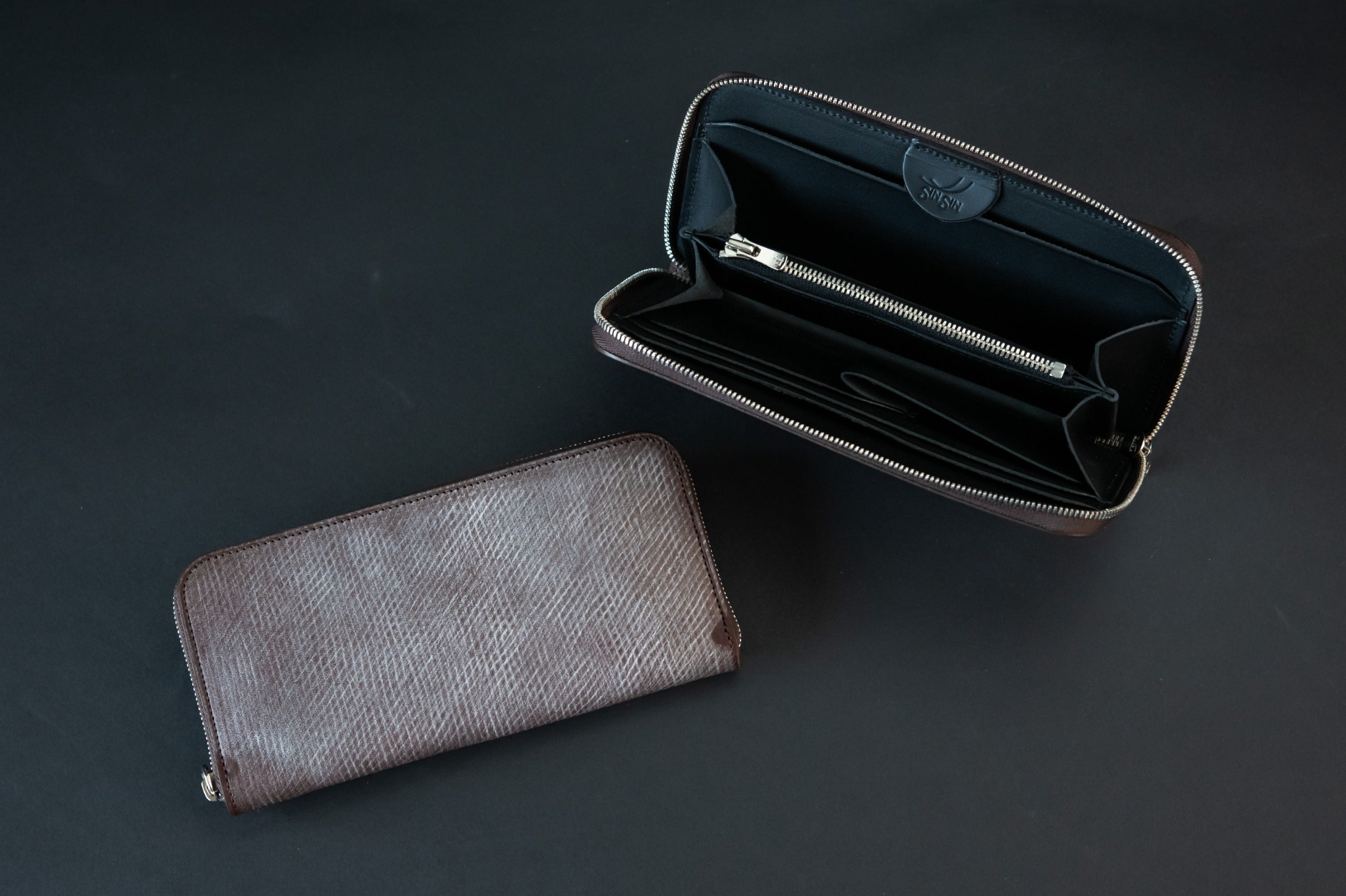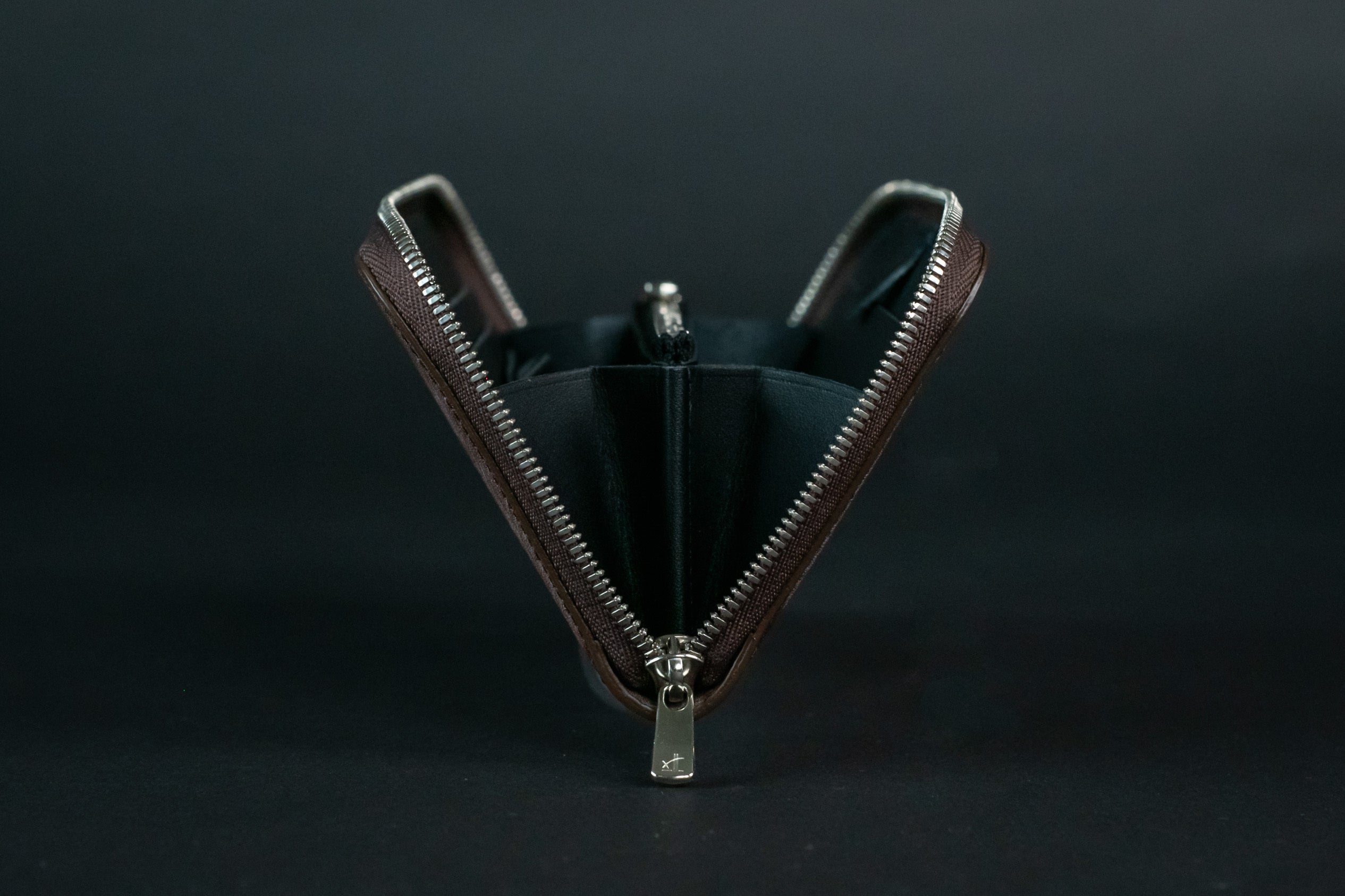 「キャッシュレス時代の極小長財布」をテーマに、数多くの「ラウンドジップ長財布」を作った実績のある財布職人の私たちが試行錯誤を重ねて、ようやく辿りついた「もうこれ以上小さくするのは無理!!」と音をあげた、極小のラウンドジップ長財布です。