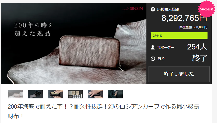 2024/10/31 12:55皆さまどうもこんにちは!新進工房の仙入寛章と申します。まずは「バタールロシアンカーフ」をご支援してくださった皆さま、本当にありがとうございます!この文章を書いている時点で、、、サポーター 37人支援総額 1,686,550円となっておりとても嬉しいです!ロシアンカーフという超マニアック超高級素材で仕上げたバタールなので、沢山の方のご支援をいただけて本当に嬉しいです!この素材はとてもレアで高級なのでほぼ素材で被ることがない財布となっています。新進工房のものづくりのこだわりの部分で共感していただけたことが本当に嬉しいです!そして販売開始から温かいコメントをいただきとても嬉しかったです。その一部をご紹介いたします。「YouTube好きです!」「ようつべの更新楽しみにしています。頑張ってください!」「新進工房の皆様これからも心躍る他には無い作品を沢山作って下さい!応援しています。」さて皆さま!ご支援いただいた皆さまにご期待以上のものづくりをお届けするのがプロです!一生懸命気持ちを込めてお作りいたします!到着までしばらくお時間をいただきますが、楽しみにお待ちくださいね!そんなわけで応援してくださったすべての皆さま、販売をサポートしてくださったCAMPFIREスタッフのみなさま本当にありがとうございます!みなさまのおかげでこの日を無事に迎えられる事が出来ました!感謝!!!!*********************▼「ロシアンカーフで作る最小級長財布」のプロジェクトページはこちらお問い合わせ先:新進工房 カスタマーサービス電話:072-968-8181受付時間:平日 10:00 - 17:00********************* もっと見る