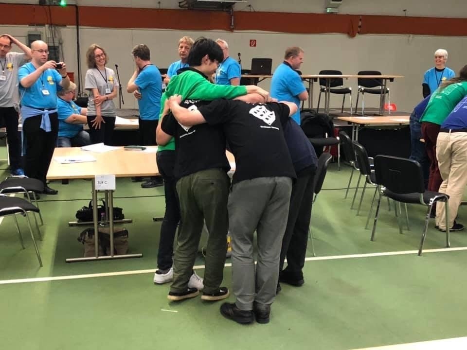 世界数独選手権2019の団体戦優勝の瞬間(撮影/世界パズル連盟)