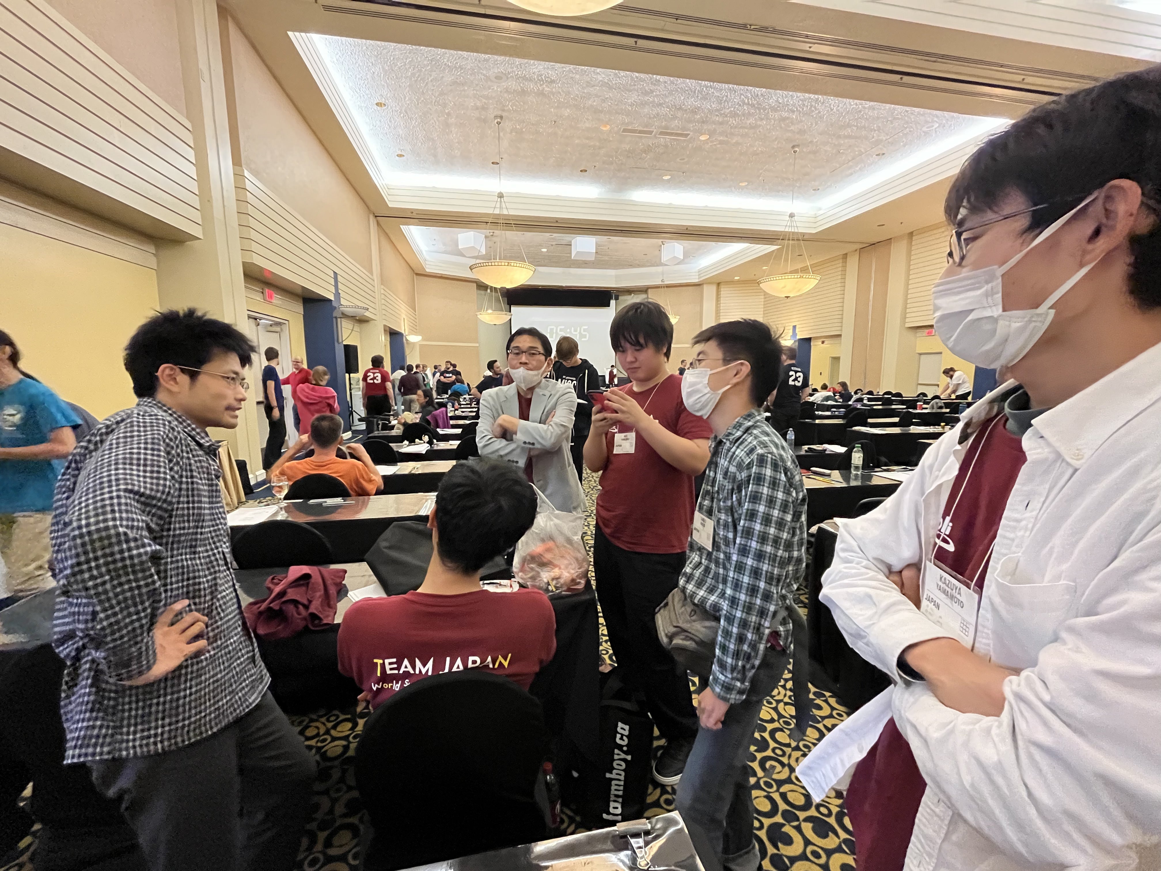競技の合間に手ごたえを確認しあう、世界パズル選手権2023の日本代表選手団