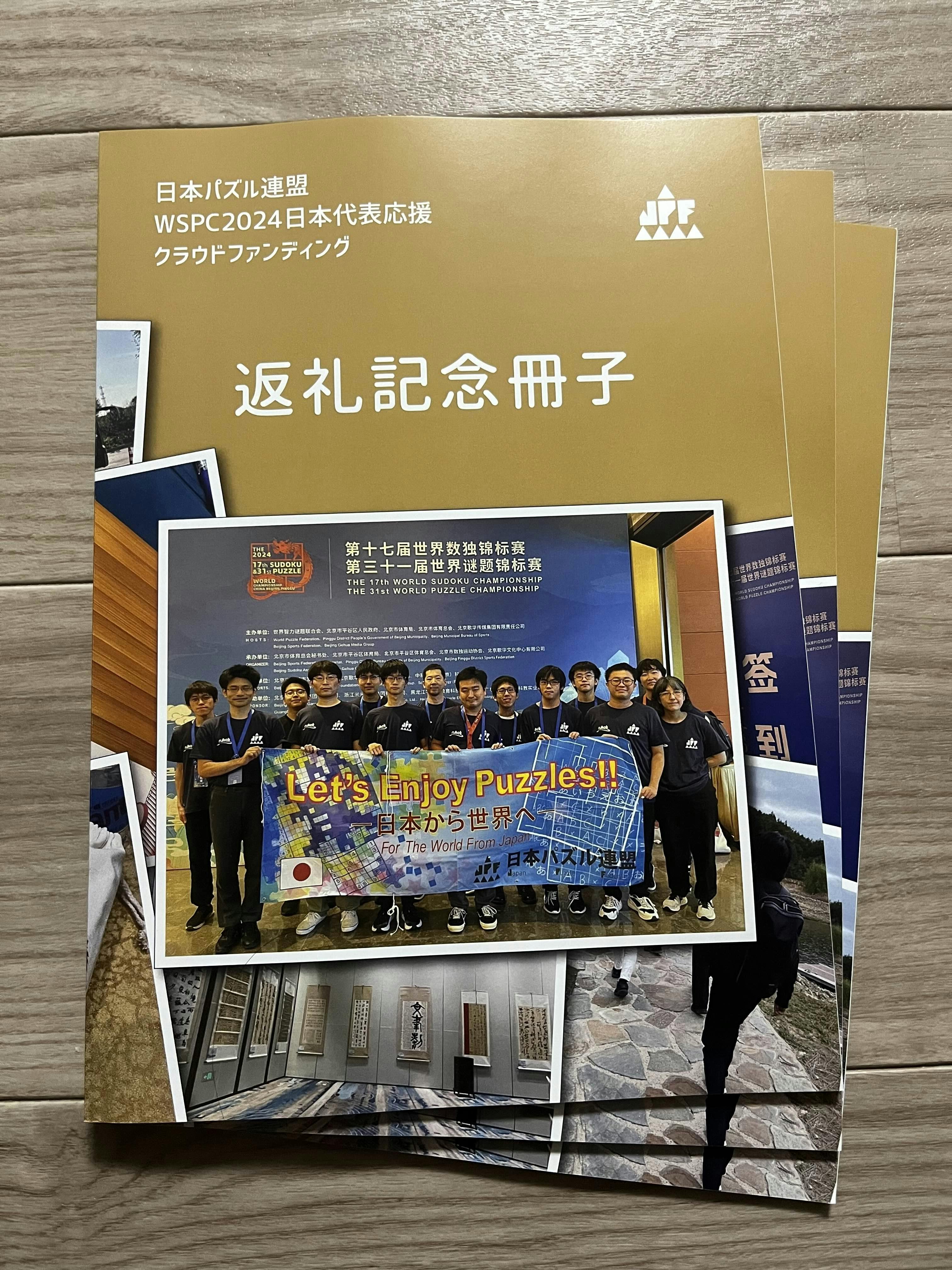 2025/01/29 12:00以下の返礼品につきまして、発送が当初予定より遅れておりましたが、このたび発送を完了いたしました。・WSC日本代表選手8名によるWSC2024の問題紹介(8問)+練習問題(各問題につき1~2問)・WPC日本代表選手8名によるWPC2024の問題紹介(8問)+練習問題(各問題につき1~2問)・WSC・WPC2024記念パズル(5問)・WSC・WPC2024旅行記(選手紹介・WSC紹介・WPC紹介・現地の写真集)裏表紙と合わせたデザインになっています!返礼品はデータにてお届けしております。また「WSC・WPC2024堪能セット」を選択いただいた方には、加えて冊子版を発送しております。到着をお待ちください。以上をもちまして、全返礼品の発送を完了いたしました。大変お待たせしてしまったものもありますが、お楽しみいただければ幸いです。本プロジェクトにつきまして、後日アンケートの実施を予定しております。支援いただいた方もそうでない方も、忌憚のないご意見をいただけますと嬉しいです。どうぞよろしくお願いいたします。 もっと見る【お詫び】返礼品発送時期が遅れます