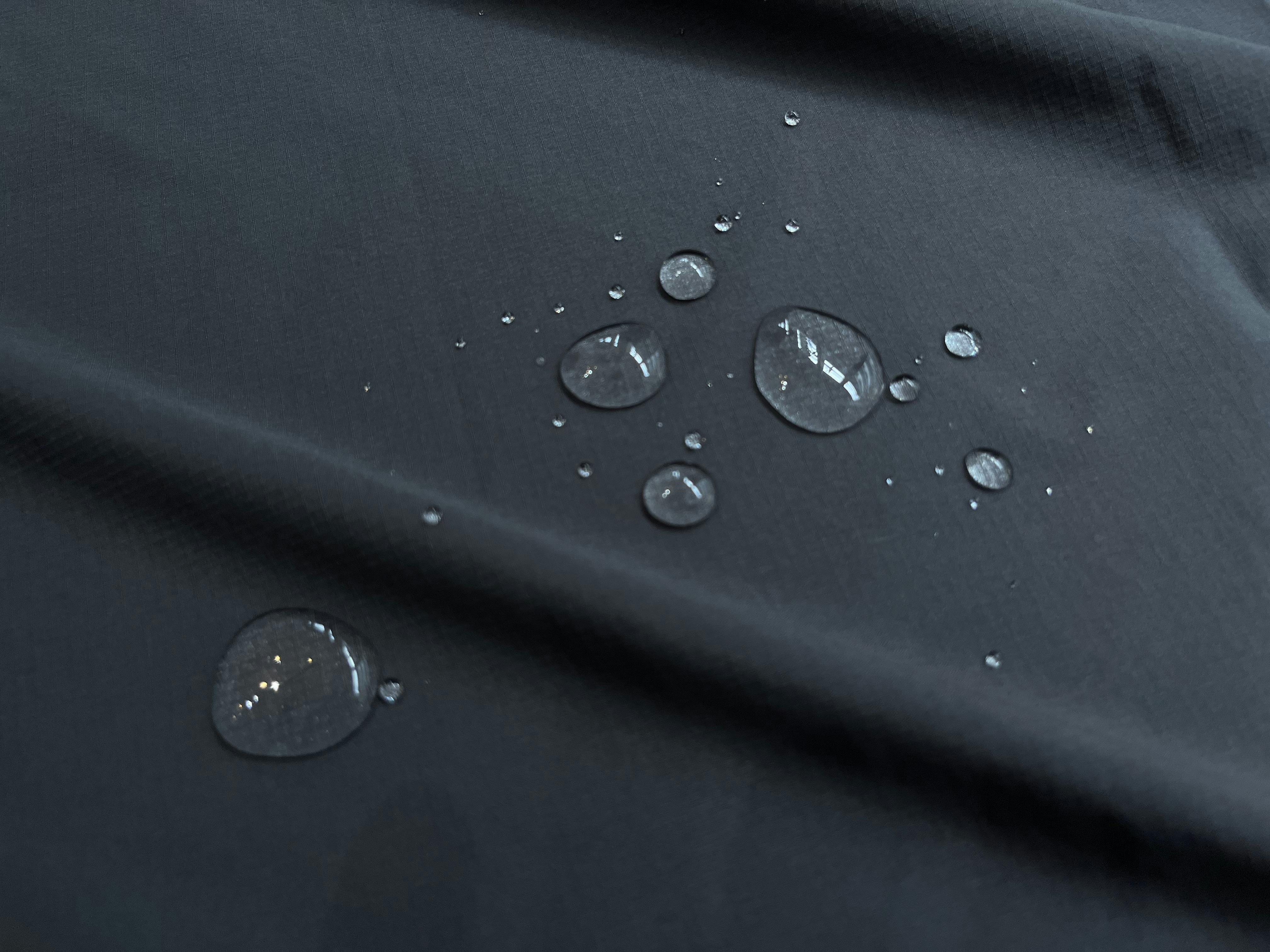 表地には引き裂け強度のあるナイロンリップストップ生地に撥水加工を施し、水をはじき汚れにくくなっています。また、ストレッチ性があるので動きやすく、肌触りはマットでサラリとしています。