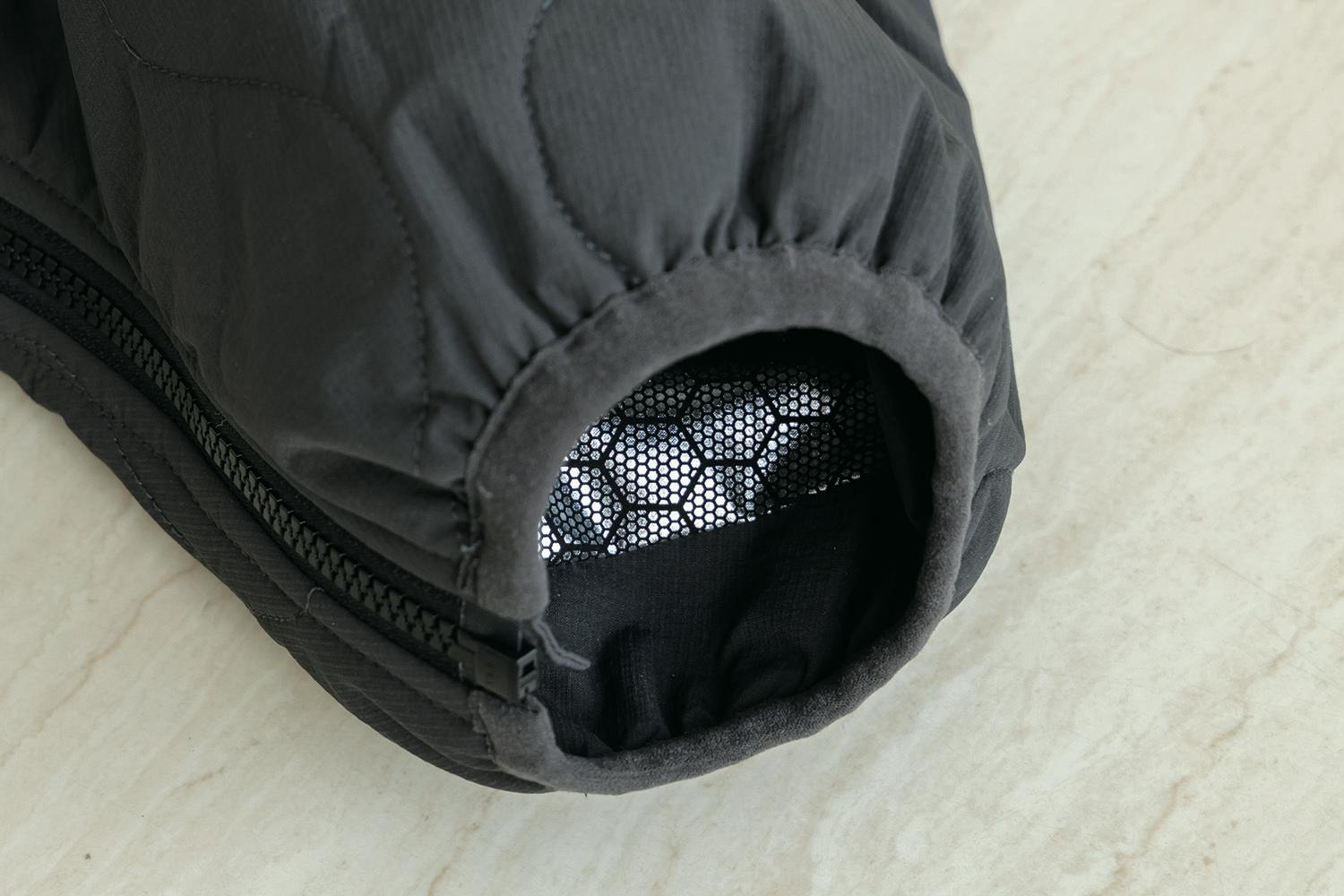 ミリタリーアイテムでよく使われるひょうたん型キルトステッチが施されているので、中綿が片寄らず均等な暖かさを保ちます。