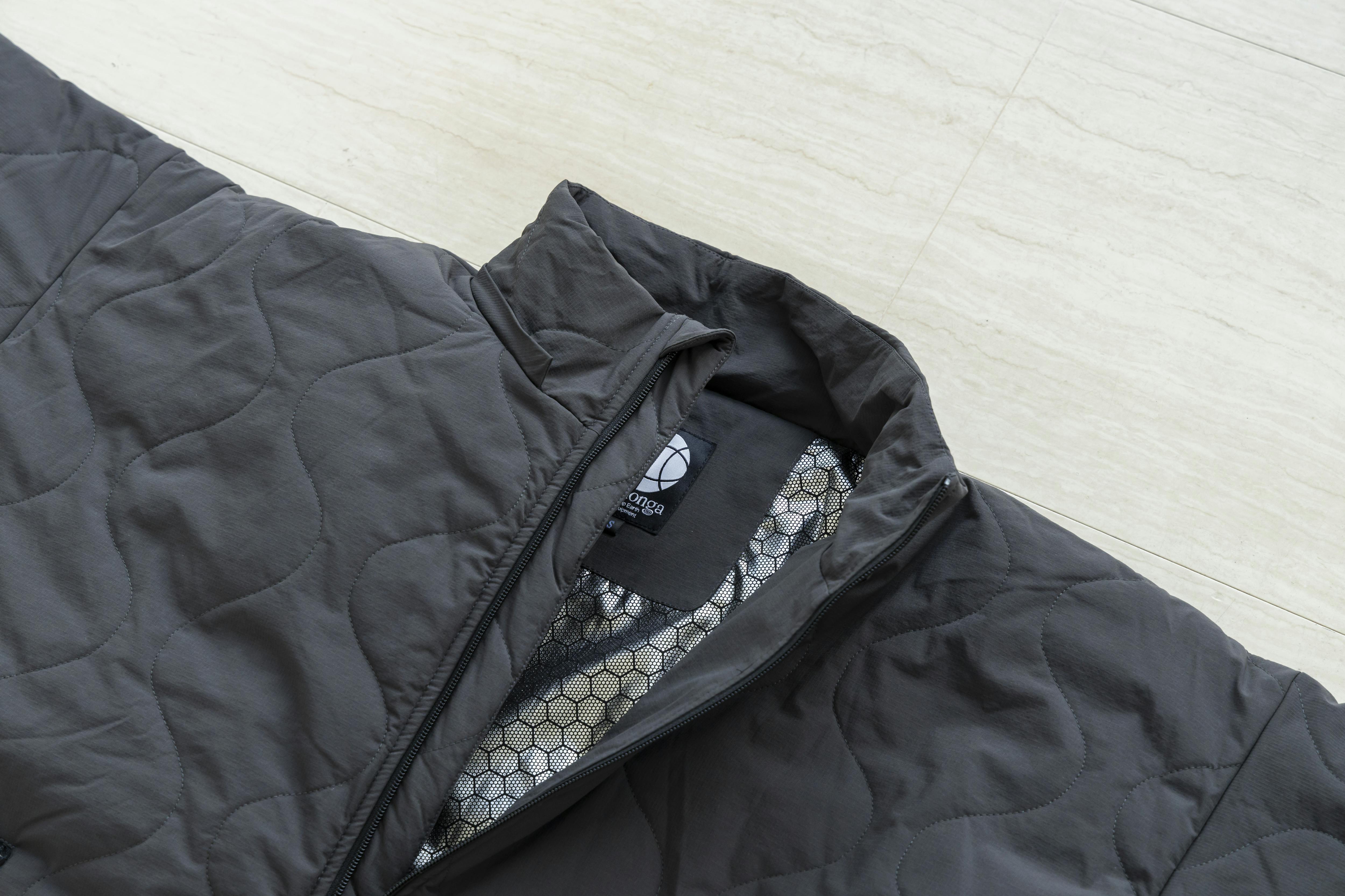 「モモンガ」は私たち全員が持っている37度前後の自然エネルギー・体温を熱源としています。身体とモモンガの間の「被服気候」といわれる空間を体温で暖めた空気で満たすことで、ゆったりと快適で移動してもずっと暖かさに包まれます。