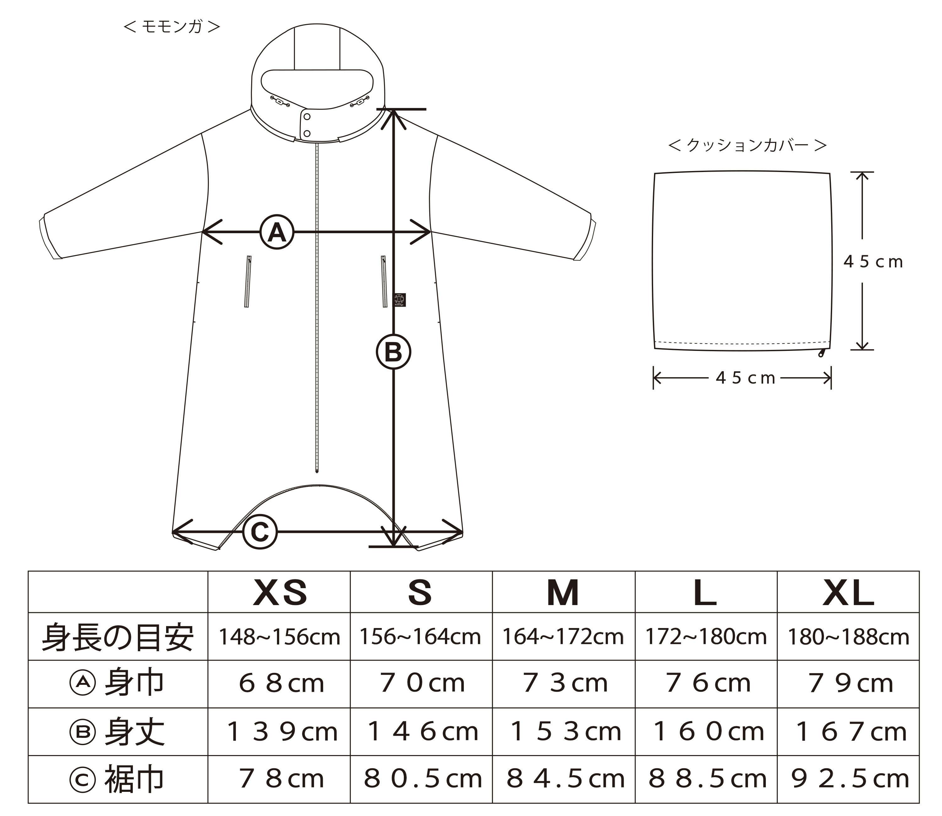 S、M、L、XL の4サイズ
