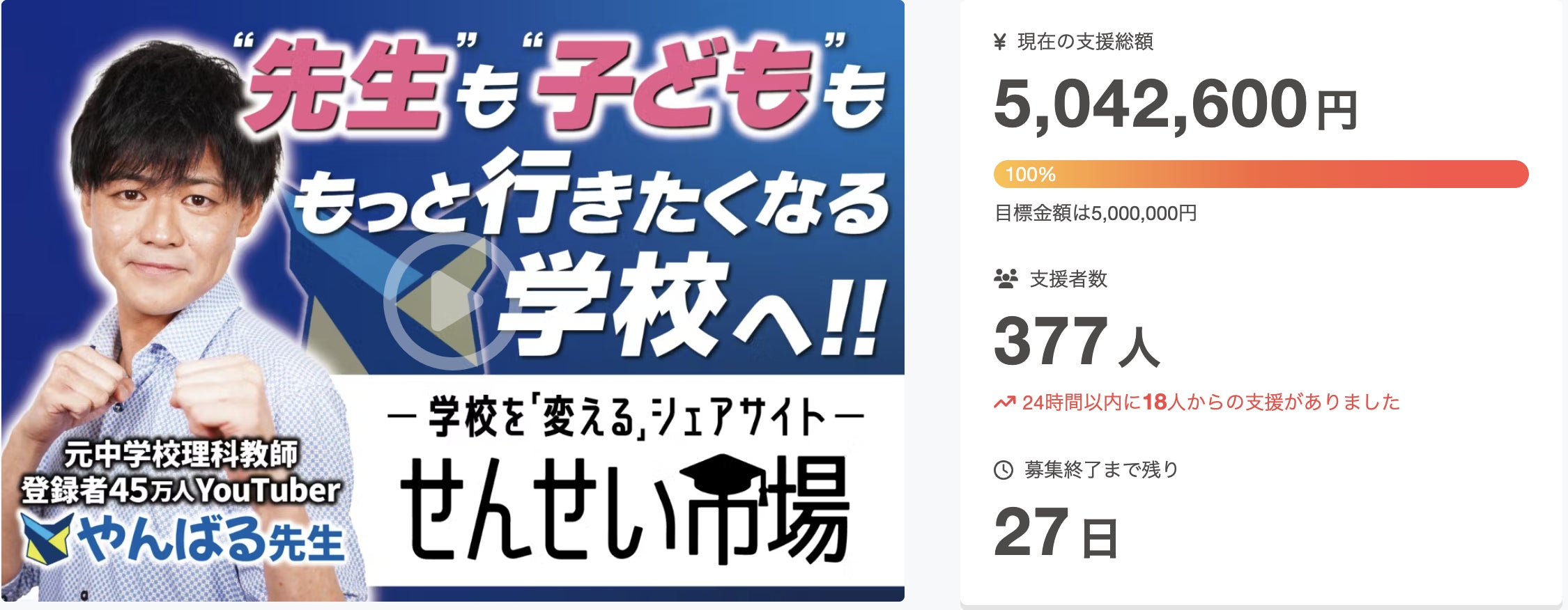 そこで、せんせい市場をさらに多くの人に「役立つサイト」にするために、ネクストゴール750万円を目指します。