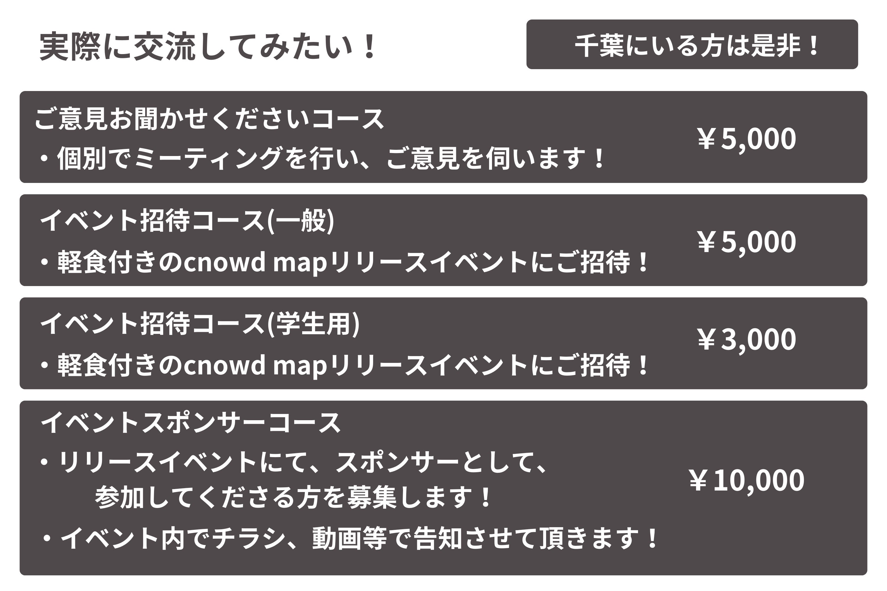 船橋・津田沼エリアから始まり、日本全国に規模を広げる【cnowd map】一同と一緒にわくわくする未来をつくりあげて頂ければ幸いです。皆様の温かいご支援を心よりお待ちしております。