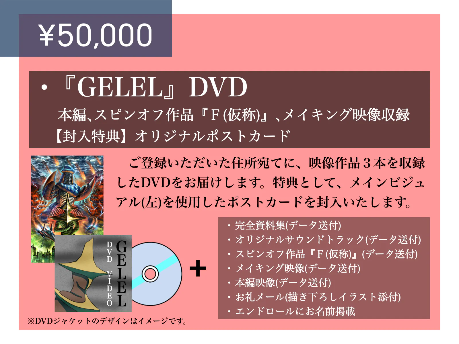 50,000円 『GELEL』DVD、オリジナルポストカード+30,000円コース返礼品