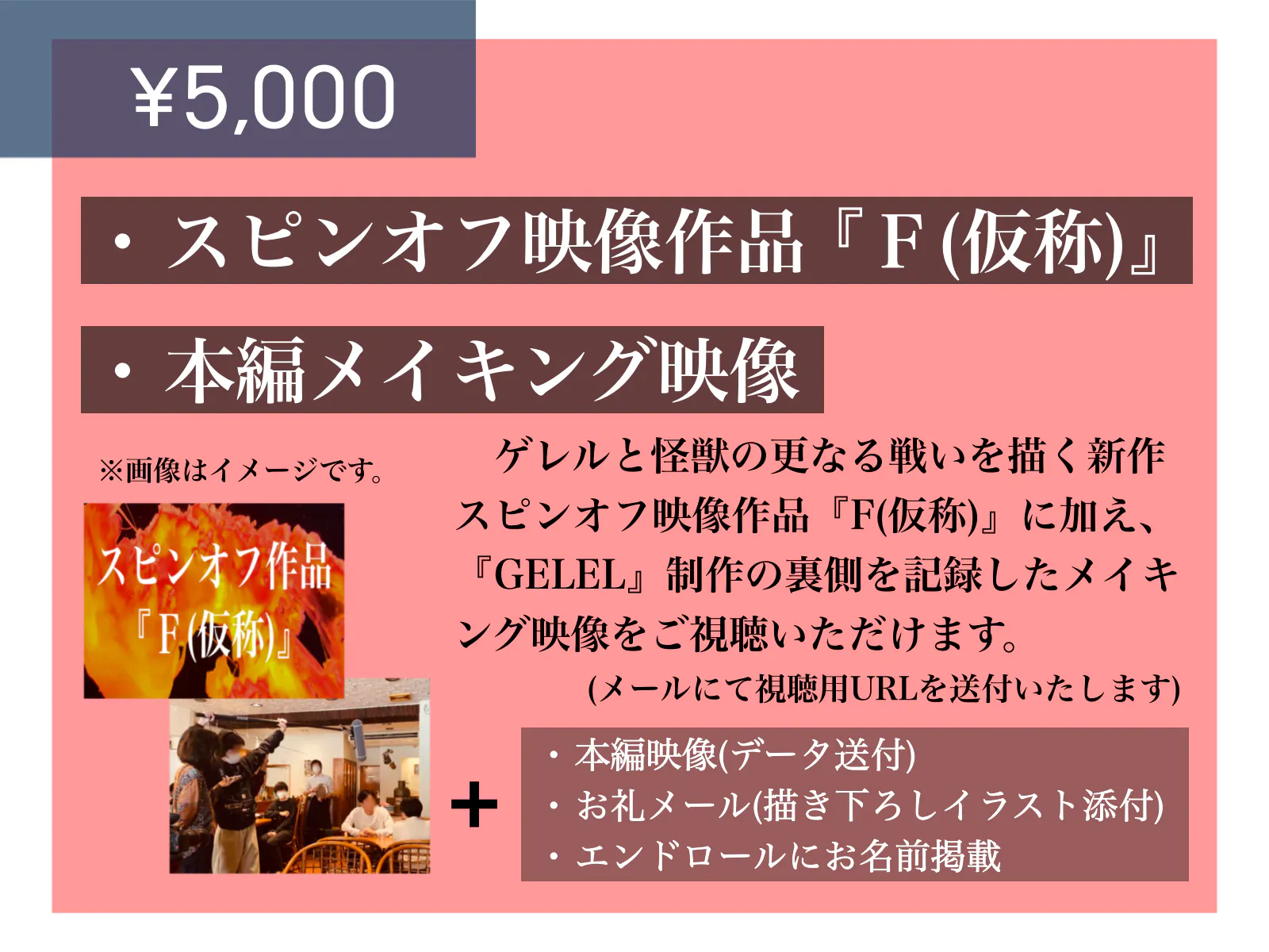 5,000円 スピンオフ作品『F(仮称)』、本編メイキング映像+3,000円コース返礼品
