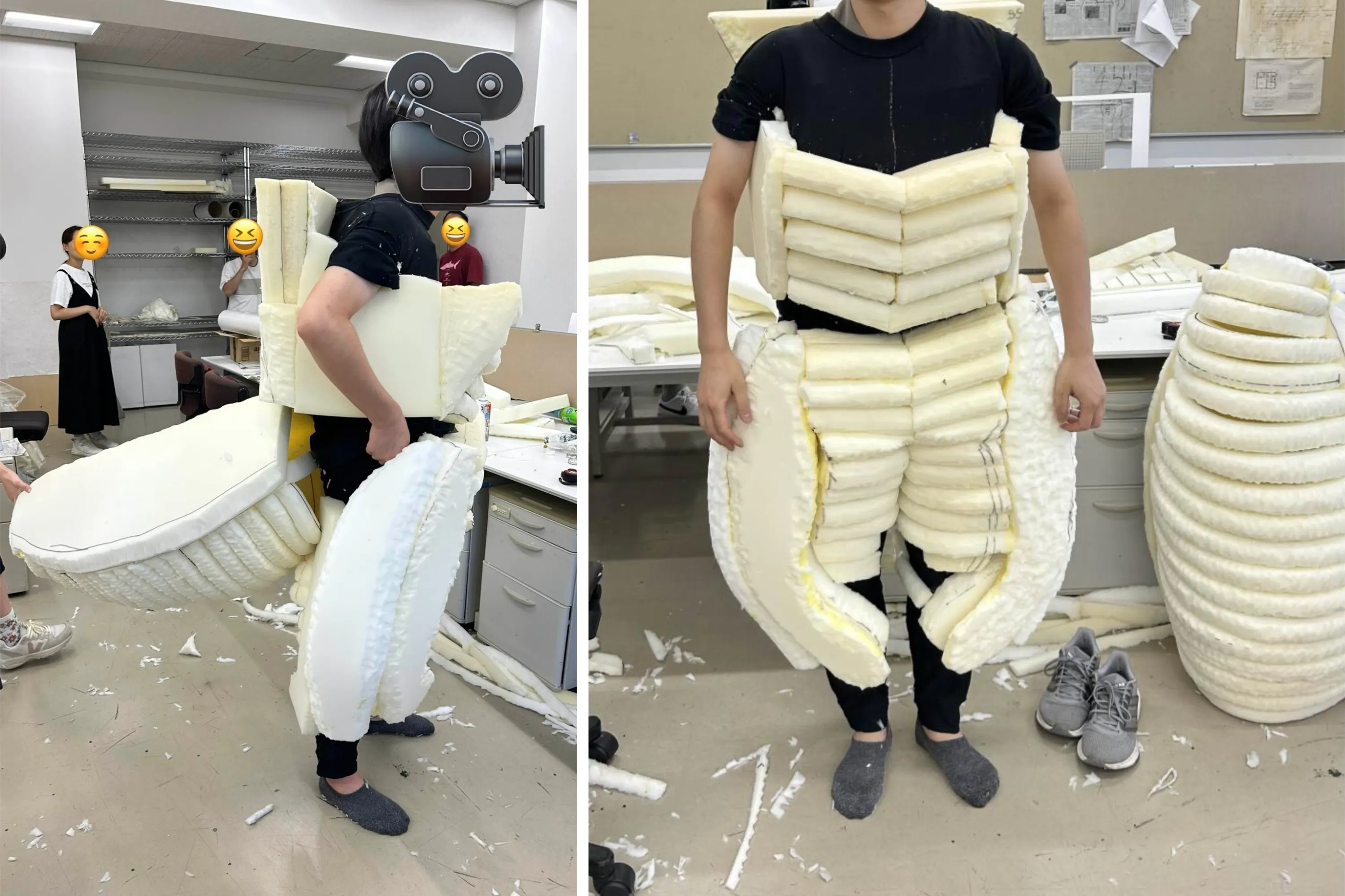 現在、怪獣(メルトロン)の着ぐるみのベースとなるウレタンマットから、ボディを削り出す作業をしています。