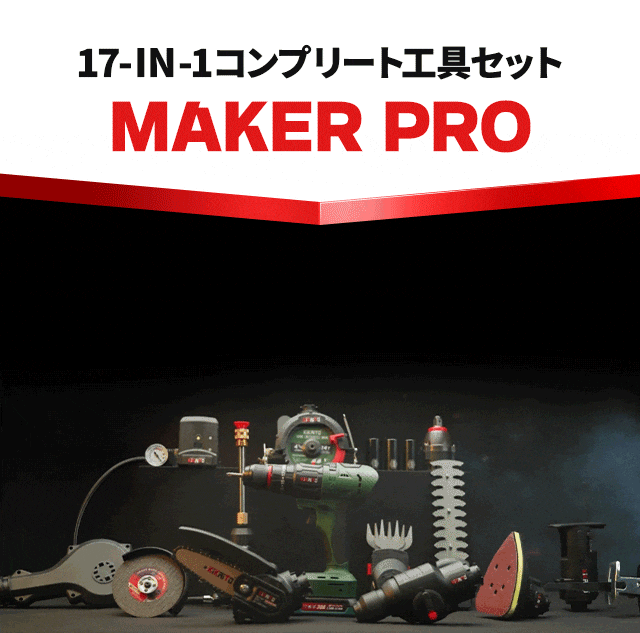 わずか69,900円さえあれば、Maker PROの完全なセットが皆さんのお手元に入ります。単体の工具を購入する費用の一部だけを負担し、高品質の電動工具17個を入手できるのです!