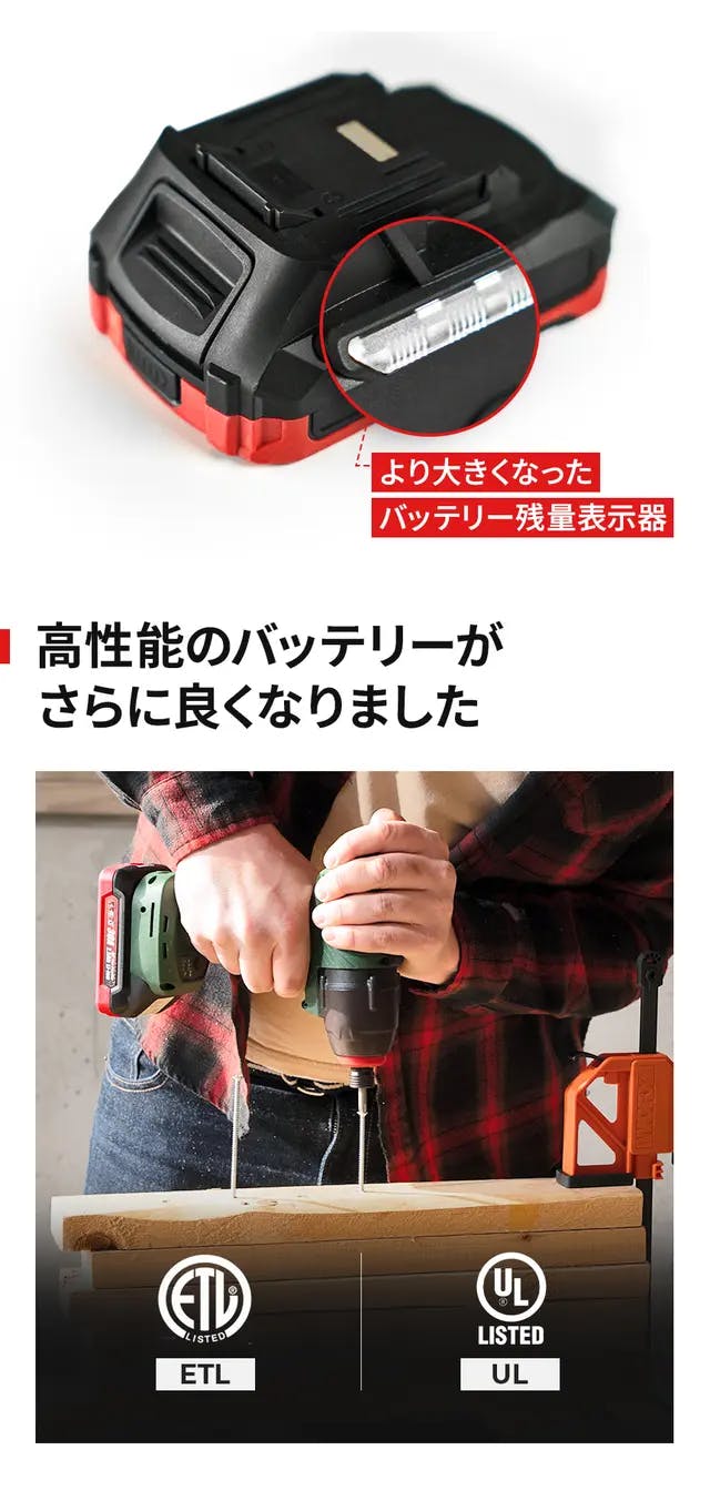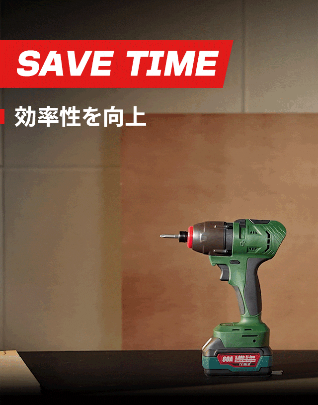 また、ドリル本体、バッテリー、すべてのパーツの性能は専門家並みであり、切断や締結等、必要なすべての作業を円滑に進めることができます。