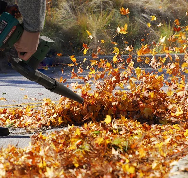 エアブロワーパーツを使用して、作業台の切りくず、庭やデッキの落ち葉を吹き飛ばすことで清掃時間を節約することができます。