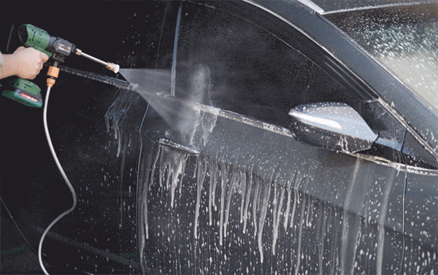 ホースパーツを使用することで車上のほこりやチリを簡単に洗い流せます。必要に応じて、2つの異なるノズル(焦点型と分散型)を使い分けることもできます。