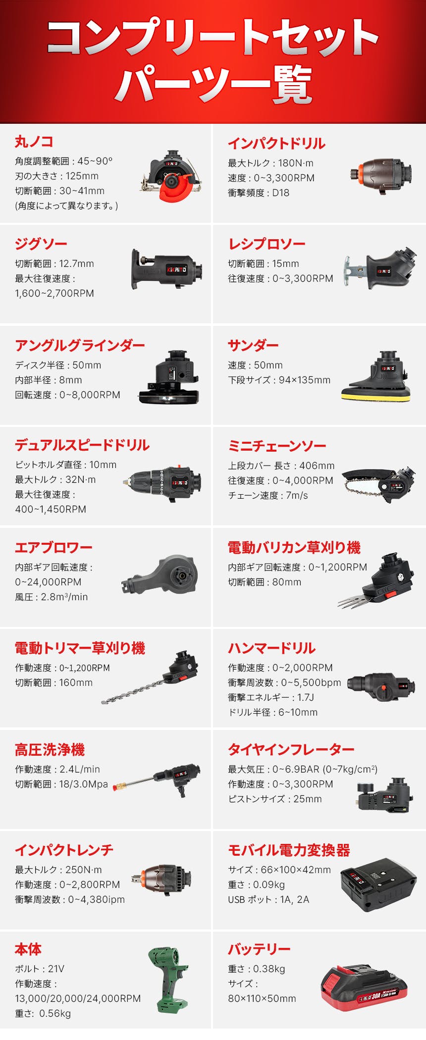 作業中他の工具が必要になったりしませんか? 問題ありません。ドリルに工具パーツを取り付けてロックするだけですぐに使用できます。必要な工具を見つけるために倉庫や物置を行ったり来たりする必要はありません。